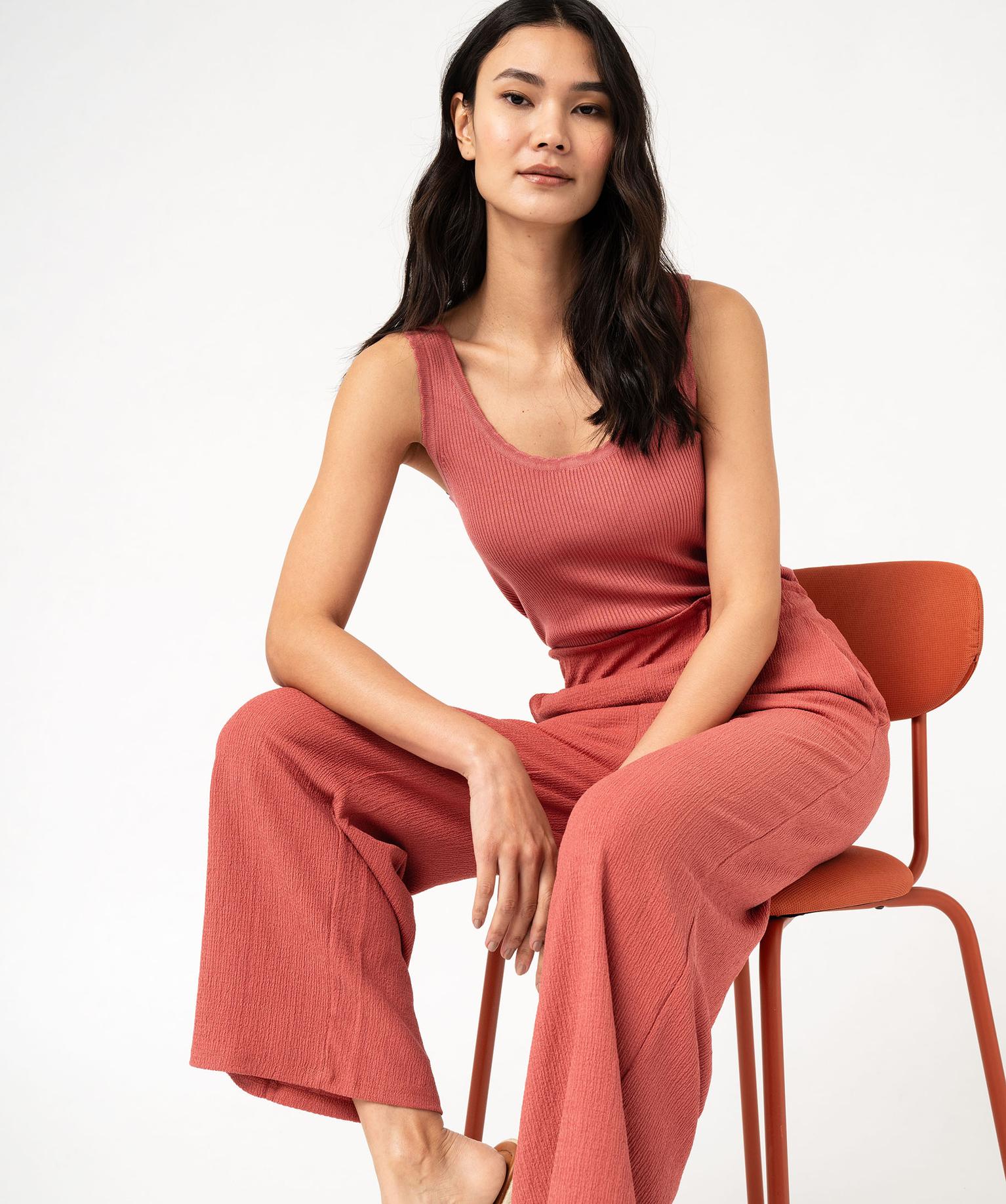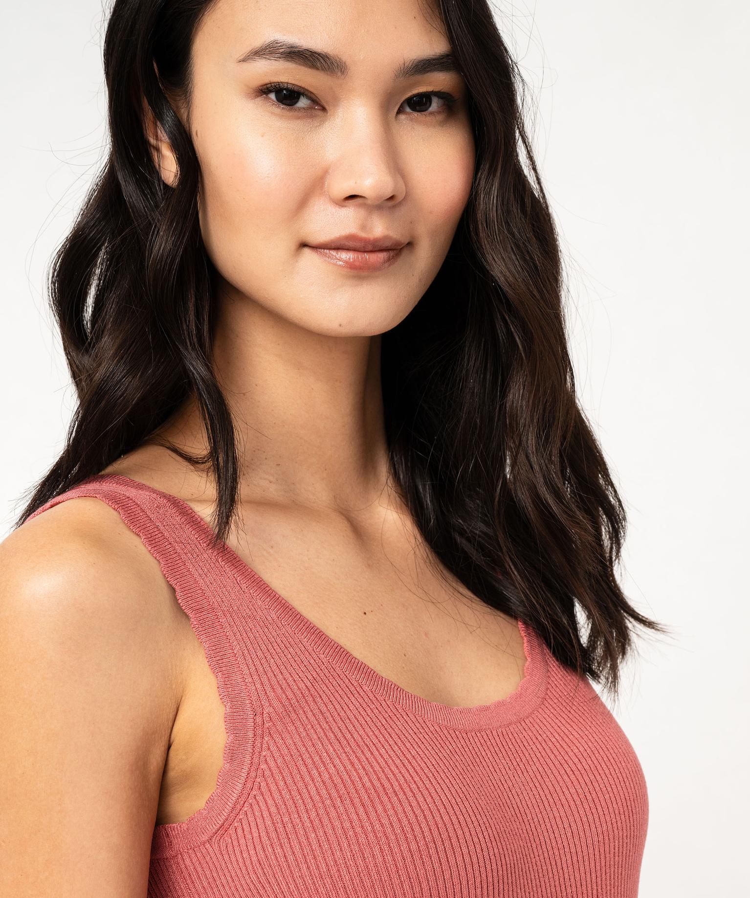Féminin, le pull d'été sans manches au décolleté dégagé. Sa maille côtelée en viscose est ultra douce, souple et extensible. Les emmanchures et l'encolure présentent une finition bord-côte festonné. La coupe droite assez près du corps rend ce pull femme facile à porter avec différents bas : pantacourt en jean, jupe trapèze ou pantalon habillé.