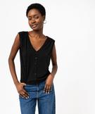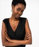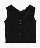 Ce joli débardeur femme vous permettra de sublimer votre silhouette cet été. Confectionné dans une maille fluide incrustée de fil pailleté, il apporte une délicate touche de brillance à toutes les tenues, qu’elles soient chics ou casual. Ce débardeur possède un double décolleté en V qui se prolonge sur l’avant d’une rangée de boutons fantaisie. Ses larges bretelles sont agrémentées de fronces sur l’avant. Un essentiel du vestiaire estival à collectionner dans tous les coloris.