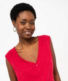 Ce joli débardeur femme vous permettra de sublimer votre silhouette cet été. Confectionné dans une maille fluide incrustée de fil pailleté, il apporte une délicate touche de brillance à toutes les tenues, qu’elles soient chics ou casual. Ce débardeur possède un double décolleté en V qui se prolonge sur l’avant d’une rangée de boutons fantaisie. Ses larges bretelles sont agrémentées de fronces sur l’avant. Un essentiel du vestiaire estival à collectionner dans tous les coloris.