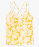 Débardeur femme à bretelles et dentelle à motif floral orange vif