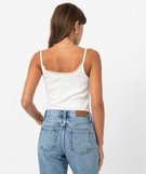 Débardeur femme à fines bretelles et col dentelle blanc chine