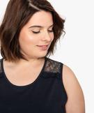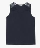 Débardeur femme avec dentelle aux épaules bleu fonce