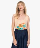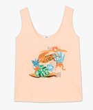 Un joli débardeur qui apportera une touche scintillante dans votre garde-robe. Ce débardeur femme affiche un motif estival parsemé de paillettes. Il possède une coupe confortable avec unelarge encolure ronde et est confectionné dans un coton à l'aspect légèrement froissé qui offre un look authentique. Ce débardeur imprimé se porte seul ou sous une chemise ouverte.
