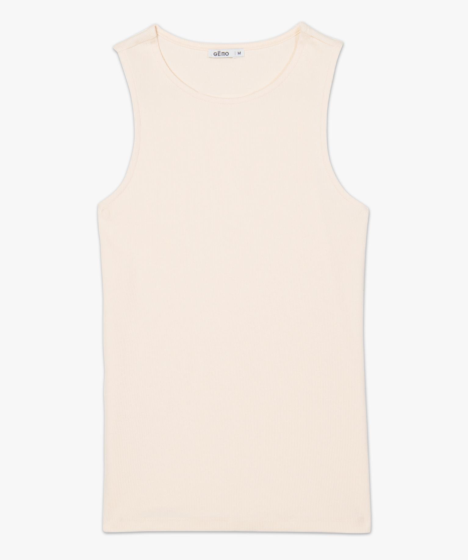Débardeur femme en coton côtelé découpe américaine orange clair