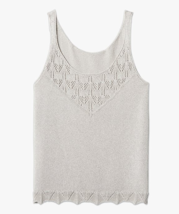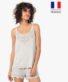 Un débardeur pour femme incrusté de fil lurex issu d’une véritable prouesse technologique. Les collections en maille 3D sont conçues par nos équipes à St-Pierre-Montlimart (49) et confectionnées à St-Malo (35) dans le premier atelier de tricotage 3D de France. Le tricotage en 3D permet de fabriquer des produits en une seule pièce et avec un seul fil. Un procédé de fabrication innovant qui assure une qualité de confection supérieure et permet une réduction des déchets de matière lors de la phase de production. La maille fabriquée en 3D affiche des finitions sans couture et limite les risques d’effilochage et de déchirure du produit. Ce débardeur en maille 3D possède de fines bretelles aux finitions roulottées et un large col rond agrémenté d’une maille fantaisie ajourée sur le haut du buste. Ce débardeur pailleté, offre un tomber fluide qui sublime les formes. Il se porte avec le short assorti, comme tenue d’intérieur ou en tenue de plage par-dessus un maillot de bain. Vous pourrez également porter ce débardeur fluide avec un short en jean et des sandales plates pour un look bohème chic au top de la tendance.