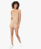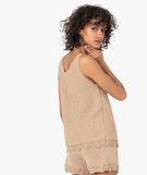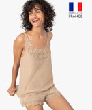 Un débardeur pour femme incrusté de fil lurex issu d’une véritable prouesse technologique. Les collections en maille 3D sont conçues par nos équipes à St-Pierre-Montlimart (49) et confectionnées à St-Malo (35) dans le premier atelier de tricotage 3D de France. Le tricotage en 3D permet de fabriquer des produits en une seule pièce et avec un seul fil. Un procédé de fabrication innovant qui assure une qualité de confection supérieure et permet une réduction des déchets de matière lors de la phase de production. La maille fabriquée en 3D affiche des finitions sans couture et limite les risques d’effilochage et de déchirure du produit. Ce débardeur en maille 3D possède de fines bretelles aux finitions roulottées et un large col rond agrémenté d’une maille fantaisie ajourée sur le haut du buste. Ce débardeur pailleté, offre un tomber fluide qui sublime les formes. Il se porte avec le short assorti, comme tenue d’intérieur ou en tenue de plage par-dessus un maillot de bain. Vous pourrez également porter ce débardeur fluide avec un short en jean et des sandales plates pour un look bohème chic au top de la tendance.