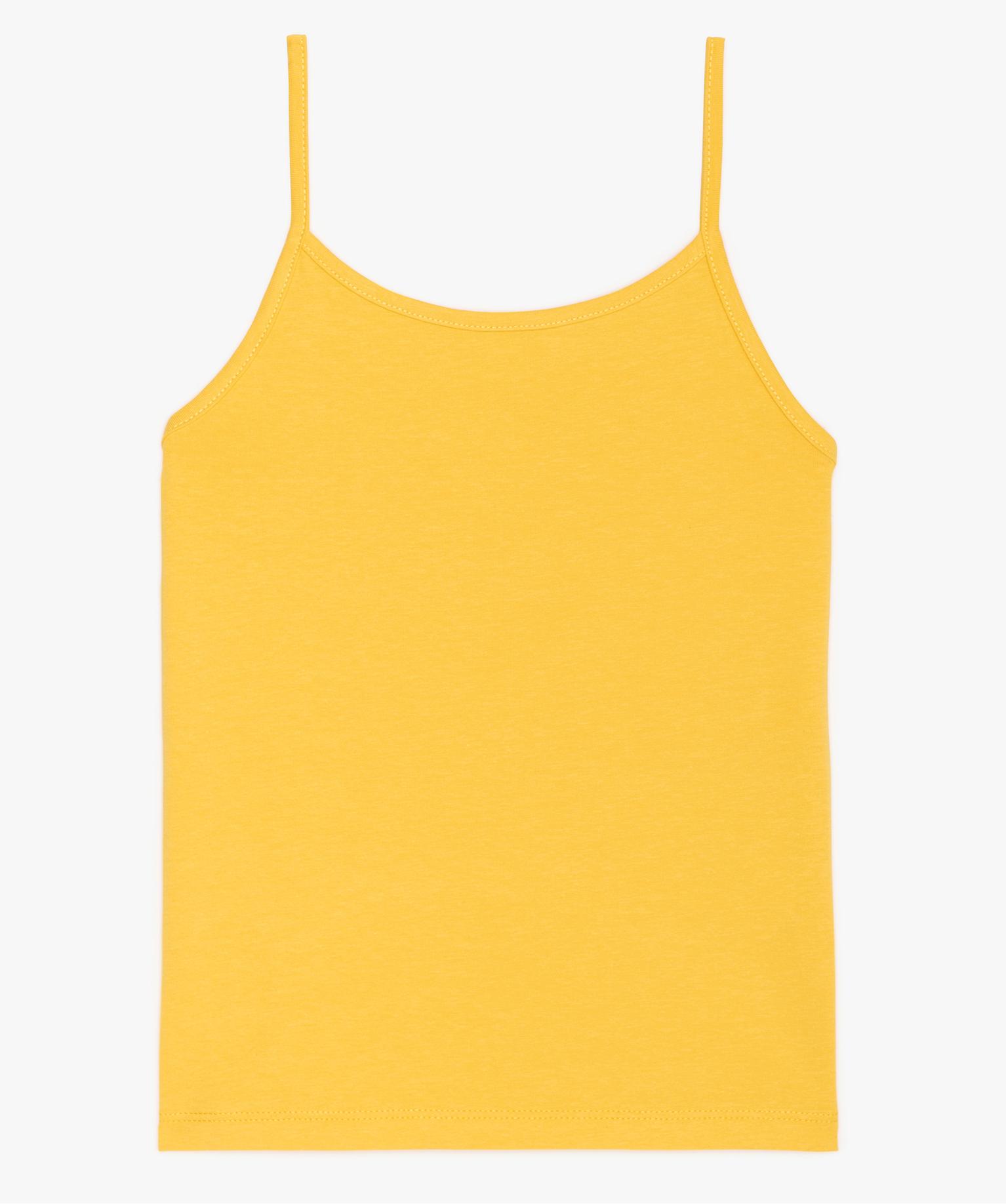 Basique incontournable de tous les dressings féminins : le top à fines bretelles. Ce débardeur fille possède un atout supplémentaire, il est entièrement confectionné en coton biologique, un coton plus doux et plus respectueux de la peau sensible des enfants. Ce débardeur à fines bretelles possède un col rond et de jolies finitions biais au col et aux emmanchures. Les petites filles le porteront en toute saison, seul ou sous un pull.