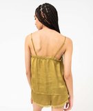 Débardeur fines bretelles en matière satinée et dentelle femme vert