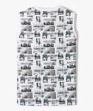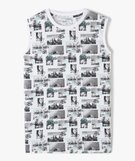 Le débardeur garçon fait partie des pièces indispensables du plein été, qui se porte aussi le reste de l’année sous un sweat zippé ou une chemise. Ce débardeur à motif estival affiche une coupe droite confortable et une confection 100% coton agréable à porter. Il possède des finitions de qualité en bord-côte au col et aux emmanchures. Col rond.