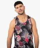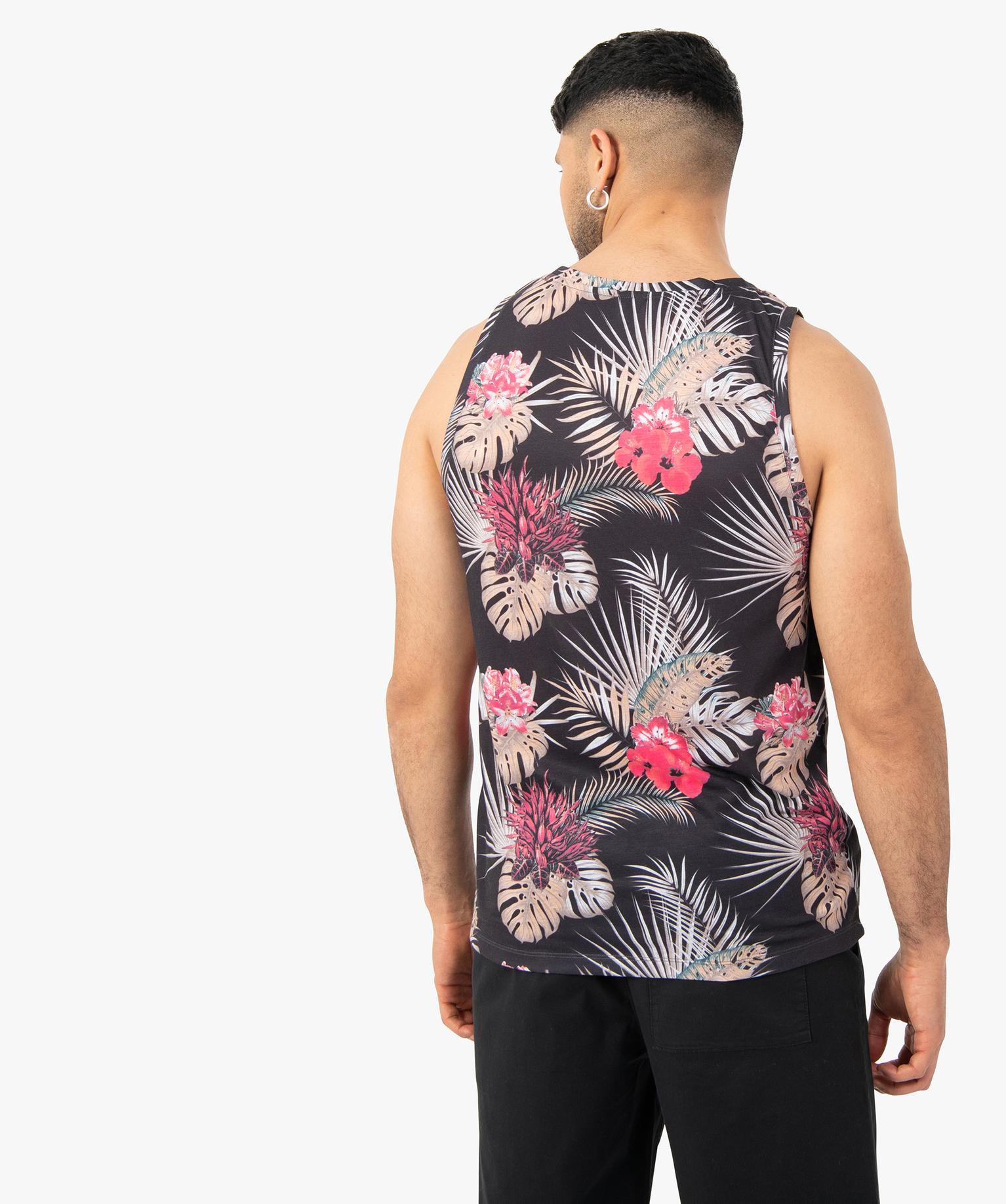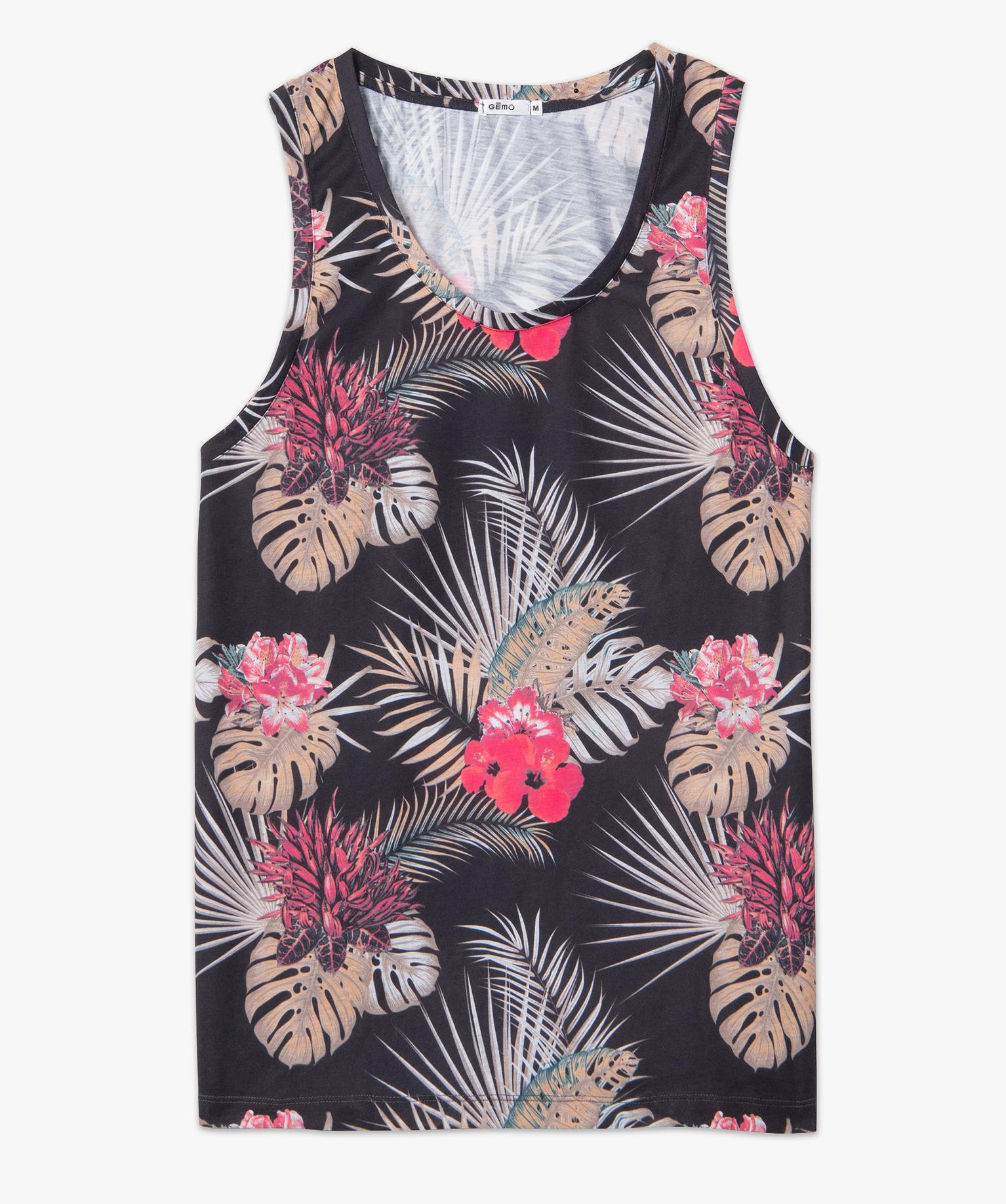 Passez en mode vacances avec ce débardeur pour homme à motifs fleuris. Un débardeur ample et confortable avec un grand col rond et de larges emmanchures. Sa matière fluide offre un toucher très doux. Ce débardeur fleuri sera le meilleur allié de votre bermuda en jean préféré ! A porter avec une paire de sandales. Finition biais au col et aux emmanchures.