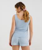 Ce joli débardeur lingerie se porte seul ou sous vos vêtements pour ajouter une touche de chaleur. Un haut de pyjama femme confectionné dans une maille côtelée et doté de jolies finitions festonnées au col et aux emmanchures. Il se porte également en tenue d’intérieur avec un short ou un pantalon homewear.