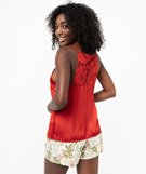 Cet élégant débardeur femme permettra de sublimer votre silhouette. Confectionné dans une matière satinée, il est orné d’un large empiècement en dentelle dans le dos et d’une bande de dentelle assortie qui borde le décolleté en V. Ses fines bretelles sont réglables pour un ajustement idéal à chaque morphologie. Ce débardeur lingerie se porte comme un caraco sous une chemise ou un pull et pourquoi pas sous une veste blazer pour une allure ultra sexy. Il se porte aussi comme haut de pyjama avec un pantalon en satin. Pinces poitrine. Bas plus long sur l’avant.