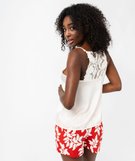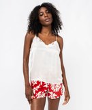 Cet élégant débardeur femme permettra de sublimer votre silhouette. Confectionné dans une matière satinée, il est orné d’un large empiècement en dentelle dans le dos et d’une bande de dentelle assortie qui borde le décolleté en V. Ses fines bretelles sont réglables pour un ajustement idéal à chaque morphologie. Ce débardeur lingerie se porte comme un caraco sous une chemise ou un pull et pourquoi pas sous une veste blazer pour une allure ultra sexy. Il se porte aussi comme haut de pyjama avec un pantalon en satin. Pinces poitrine. Bas plus long sur l’avant.
