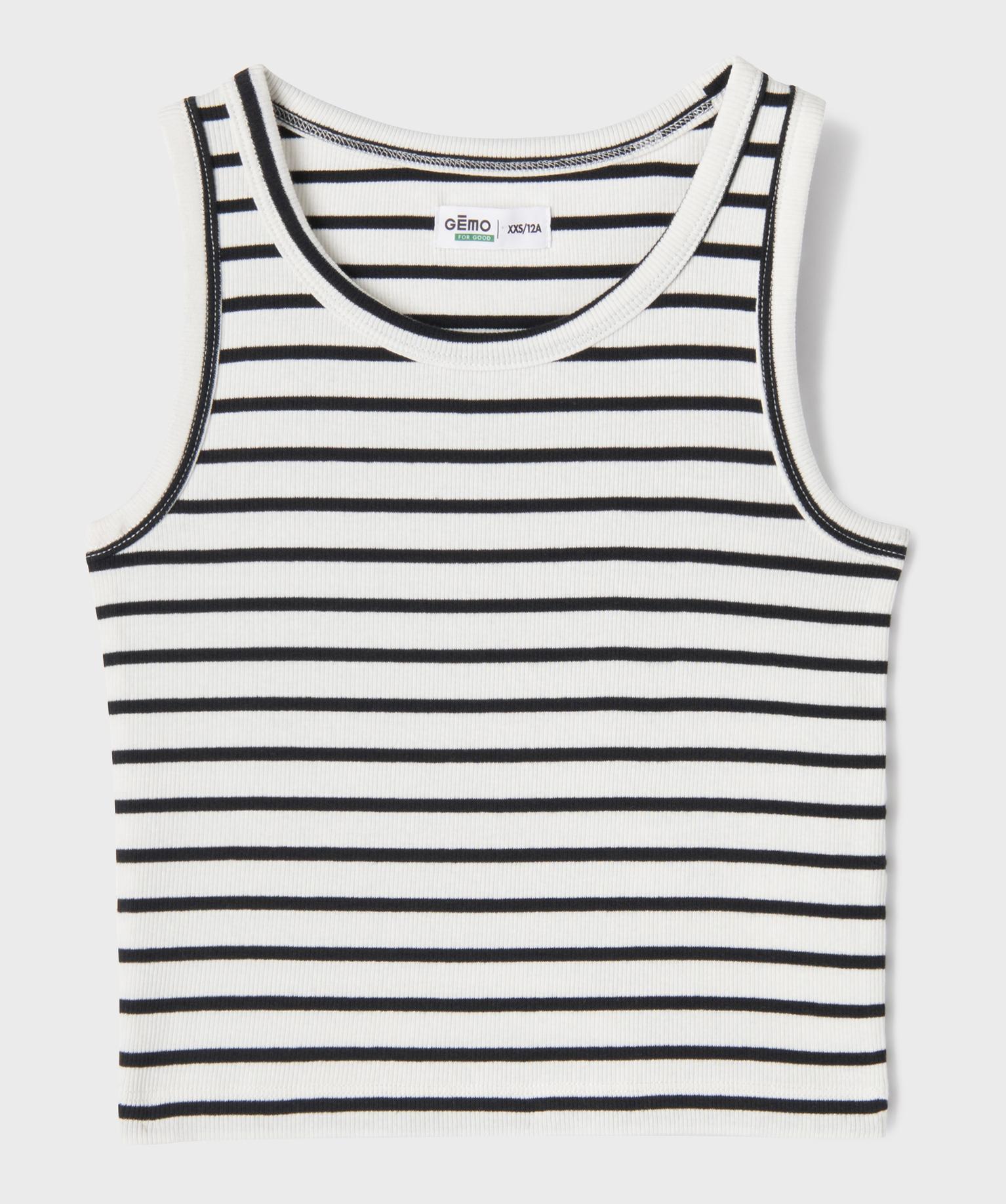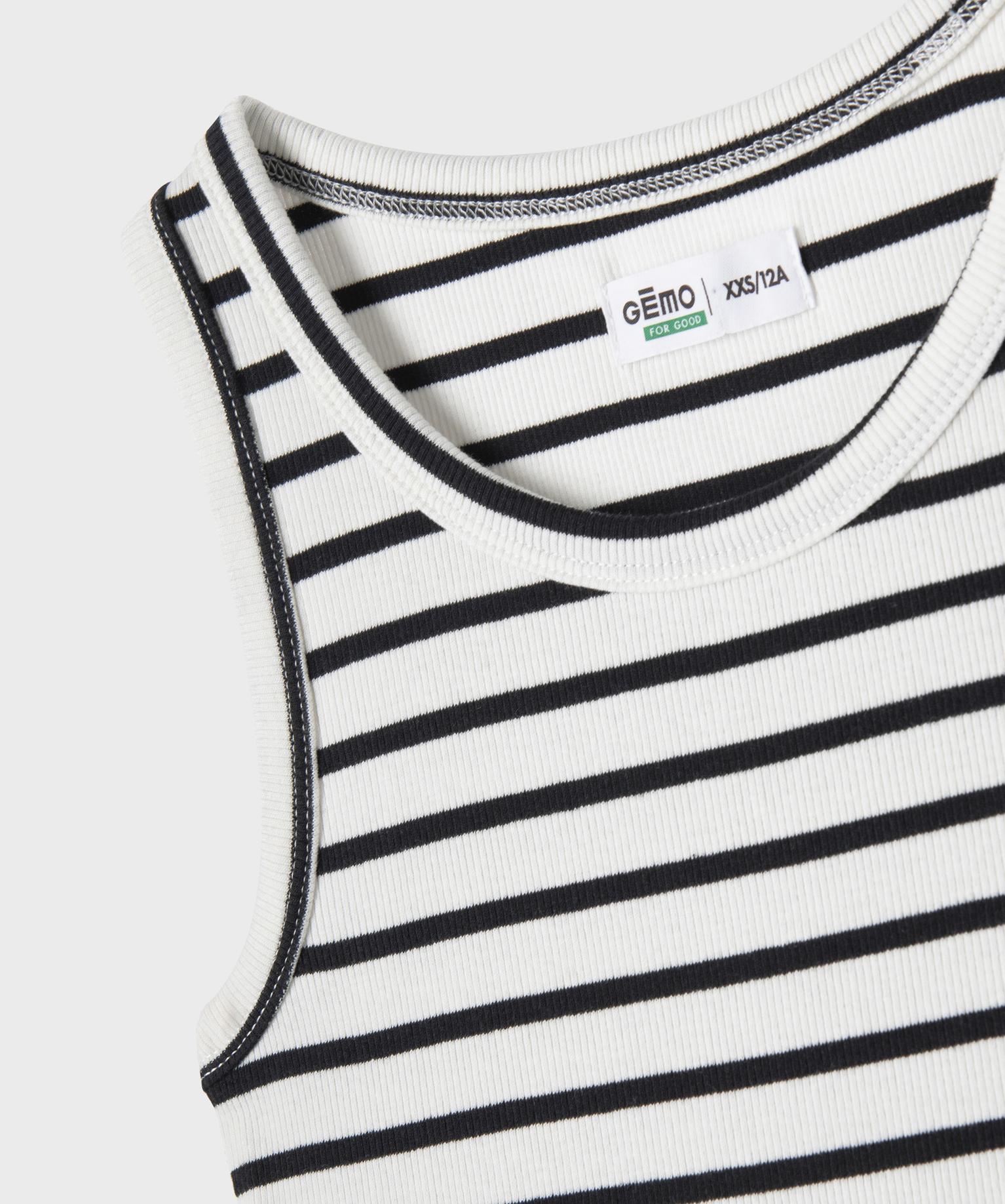 Une brise marine souffle sur le dressing des filles avec ce débardeur à rayures. Un modèle en maille côtelée confectionné en coton et coton recyclé, avec une pointe d’elasthanne pour plus de confort. Il affiche une coupe courte près du corps, parfaite pour sublimer le buste. Un débardeur fille à porter avec un jean large et des baskets pour un look urbain ultra tendance, ou avec une jupe patineuse pour une allure estivale plus féminine. Un essentiel qui trouvera facilement sa place dans toutes les garde-robes.