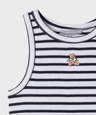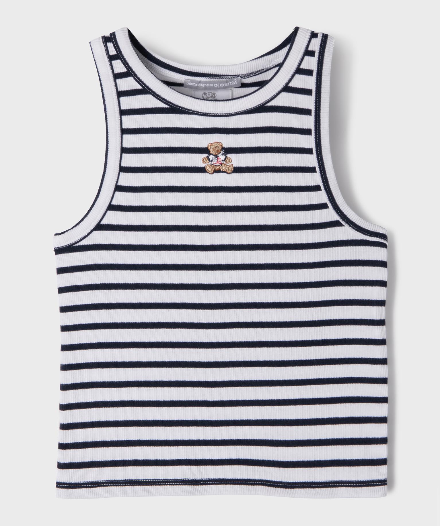 Ce débardeur rayé issu de la collection capsule exclusive entre LuluCastagnette et Alizée ravira les ados ! Avec sa coupe près du corps, ses emmanchures largement échancrées et ses rayures inspirées de l’univers marin, ce débardeur fille fait un clin d’oeil aux looks des années 2000, faisant rimer nostalgie et style d’aujourd’hui ! Il arbore la signature de la marque à travers un petit ourson bordé sur la poitrine. Un débardeur à porter en mode casual avec un short en jean et des baskets ou en version plus féminine avec une jupe et des jolies sandales.