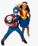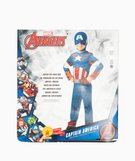 La panoplie présente bien sûr les couleurs du héros et notamment le A des Avengers et l'étoile de Captain America. Un déguisement à compléter avec le bouclier ! Fermeture sous menton et au dos par scratch.