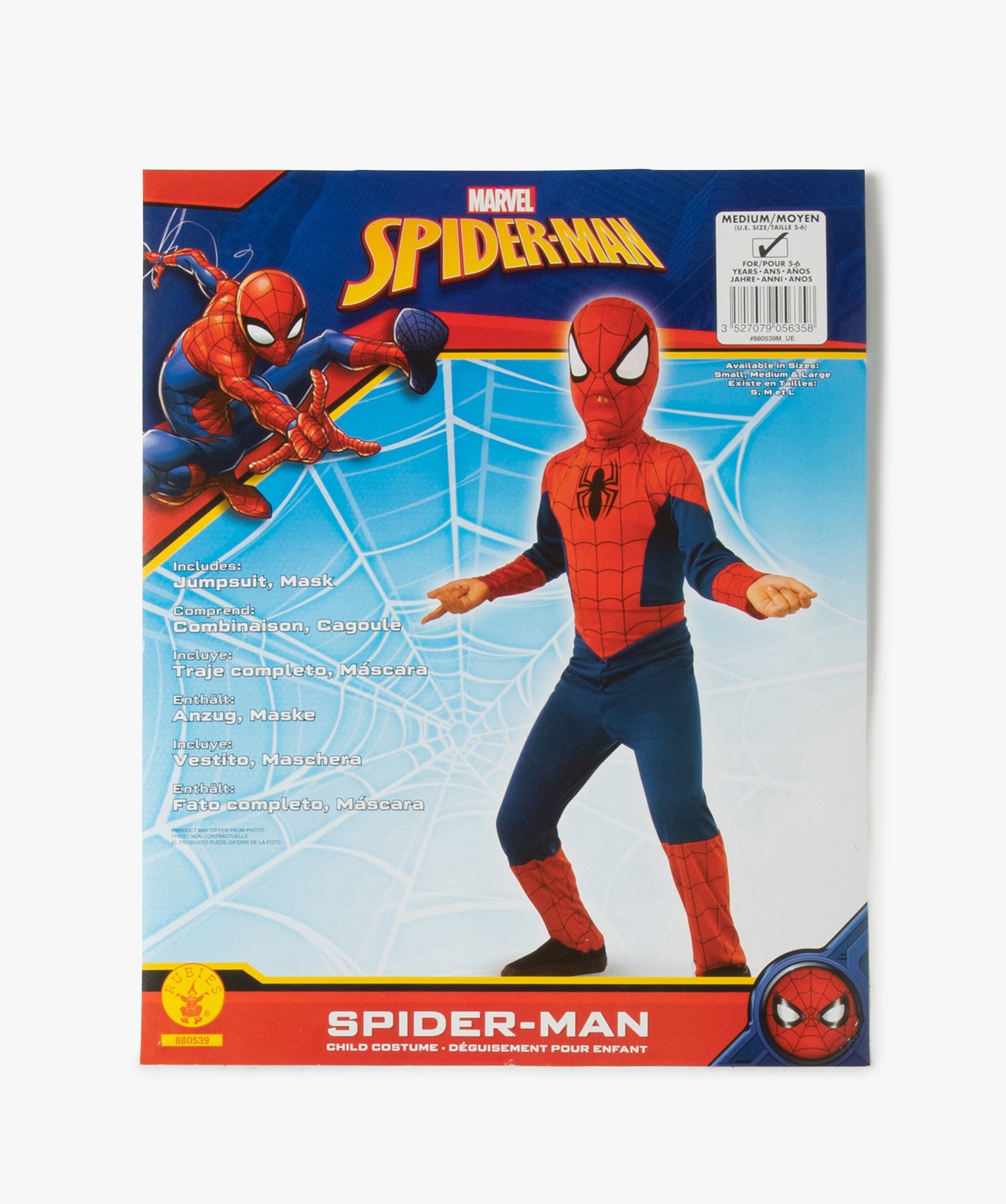 Pour une fête déguisée ou pour le plaisir de jouer les super héros, votre enfant sera ravi de se glisser dans la peau de Spiderman. Le déguisement se compose d'une combinaison imprimée et d'une cagoule aux couleurs du célèbre héros des Avengers. La combinaison se ferme au dos à l'aide d'un scratch. La cagoule recouvre entièrement la tête, mais est dotée de trous au nez et d'un filet au niveau des yeux pour assurer un maximum de confort. Cette panoplie Marvel est idéale pour stimuler l'imagination de votre enfant.