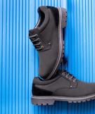 Indémodables derbies décontractés, à porter avec vos jeans, cargos et autres pantalons décontractés. Des chaussures basses homme en cuir avec doublure en textile chevrons élégants, gros lacets ronds bicolores passés dans des œillets en métal. On note les détails soignés : semelle crantée épaisse, contrefort en cuir suède, semelle débordante surpiquée, col et languette rembourrés.