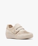 Derbies confort look sport à bride scratch femme beige
