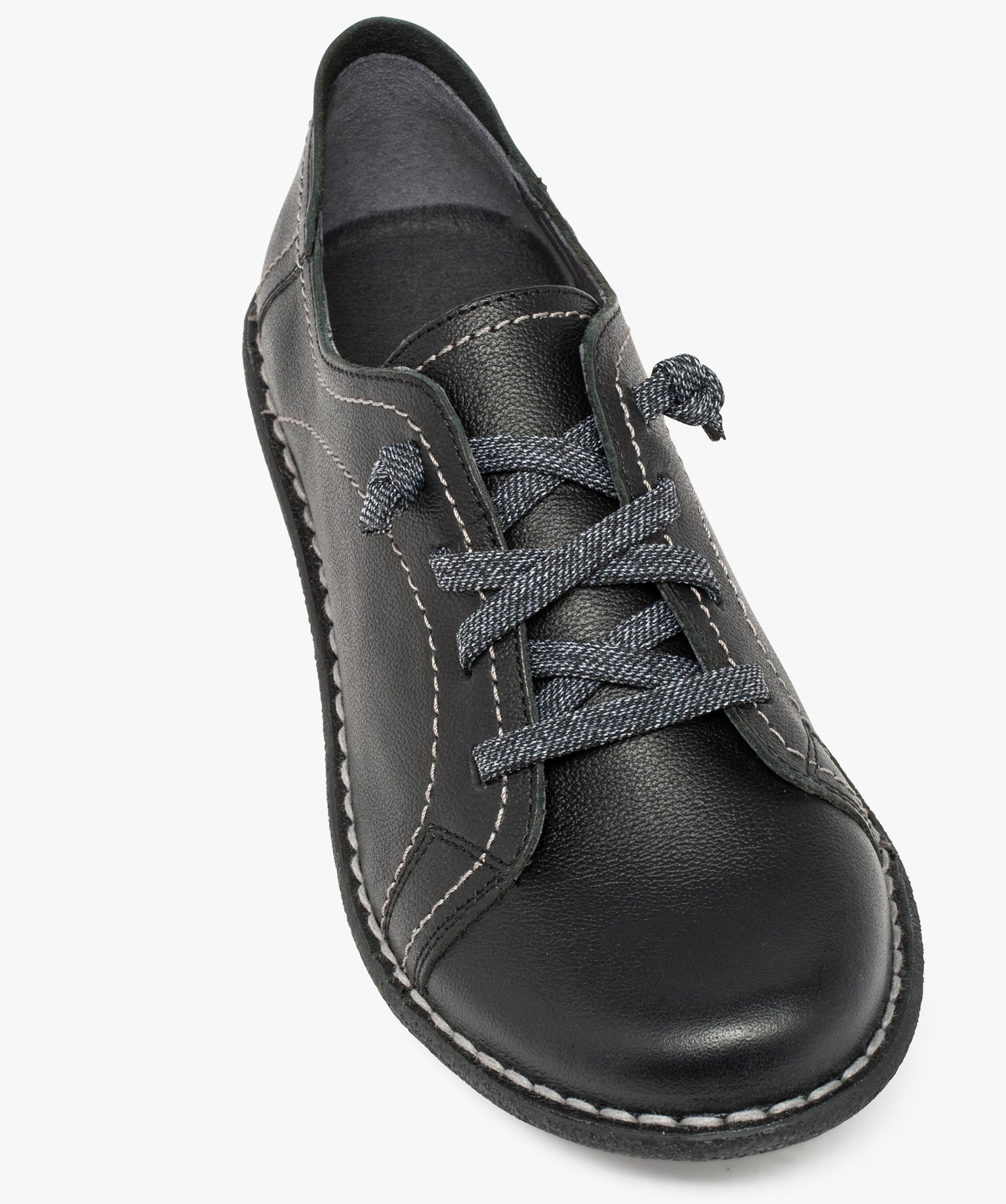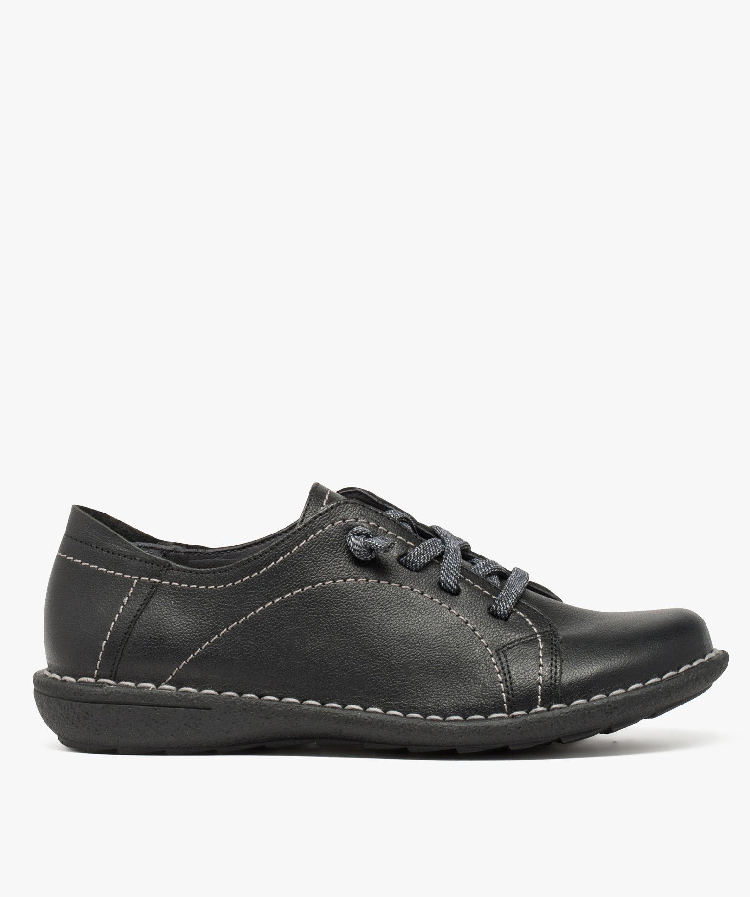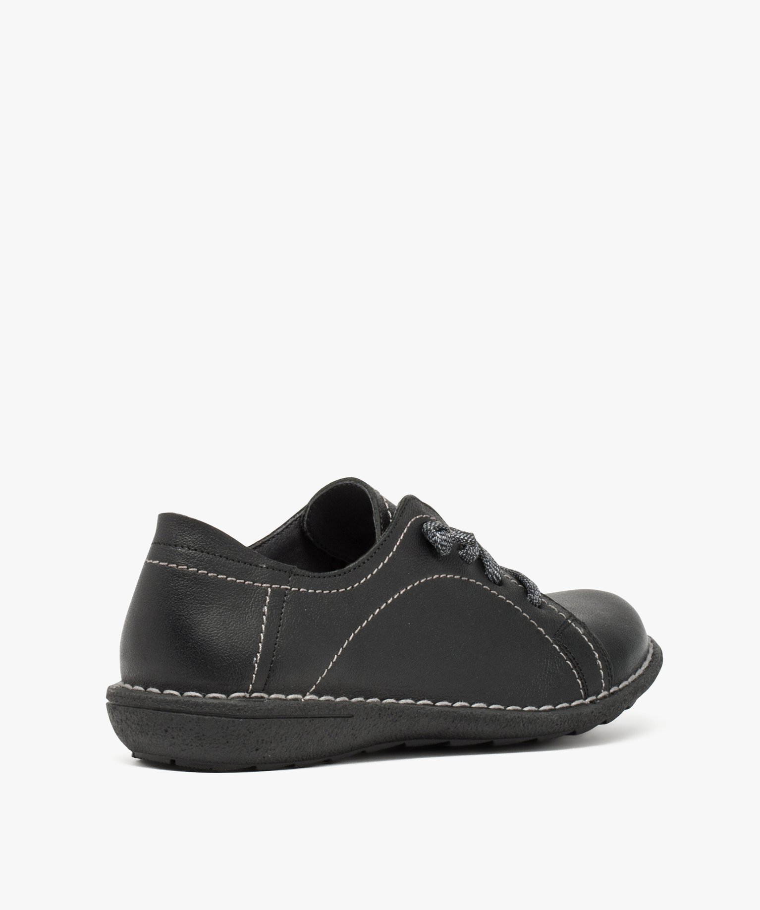 Derbies femme confort dessus cuir à lacets élastiques noir