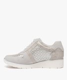 Derbies femme confort dessus métallisé et ajouré à semelle compensée gris clair