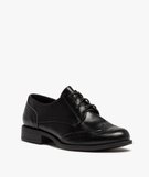 Derbies femme unis à talon plat et bout golf fleuri[MISSING] noir