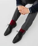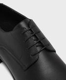 Sobriété, élégance et une discrète pointe d'originalité pour ces derbies homme. Sa ligne simple avec bout carré est mise en relief par une matière cuir imitation grainée et quelques surpiqûres ton sur ton à l'arrière. Les chaussures basses se ferment à l'aide de lacets ronds cirés et reposent sur une semelle avec couche d’usure antidérapante et talon plat classique. Intemporel, ce derby homme accompagnera tous les pantalons de costume, mais aussi les jeans et les chinos pour une silhouette urbaine.