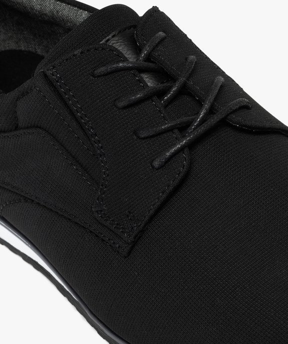 Polyvalente, cette paire de derbies homme s'adapte à tous les styles : casual, chic ou décontracté. Un dessus textile et une semelle contrastante plutôt sportswear, vous pouvez porter ces chaussures de ville avec votre jean préféré ou pantalon chino. Ces chaussures homme proposent un intérieur style denim très tendance. Semelle intérieure moussée et amovible.