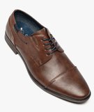 Derbies homme unis à bout droit et surpiqûres marron vif