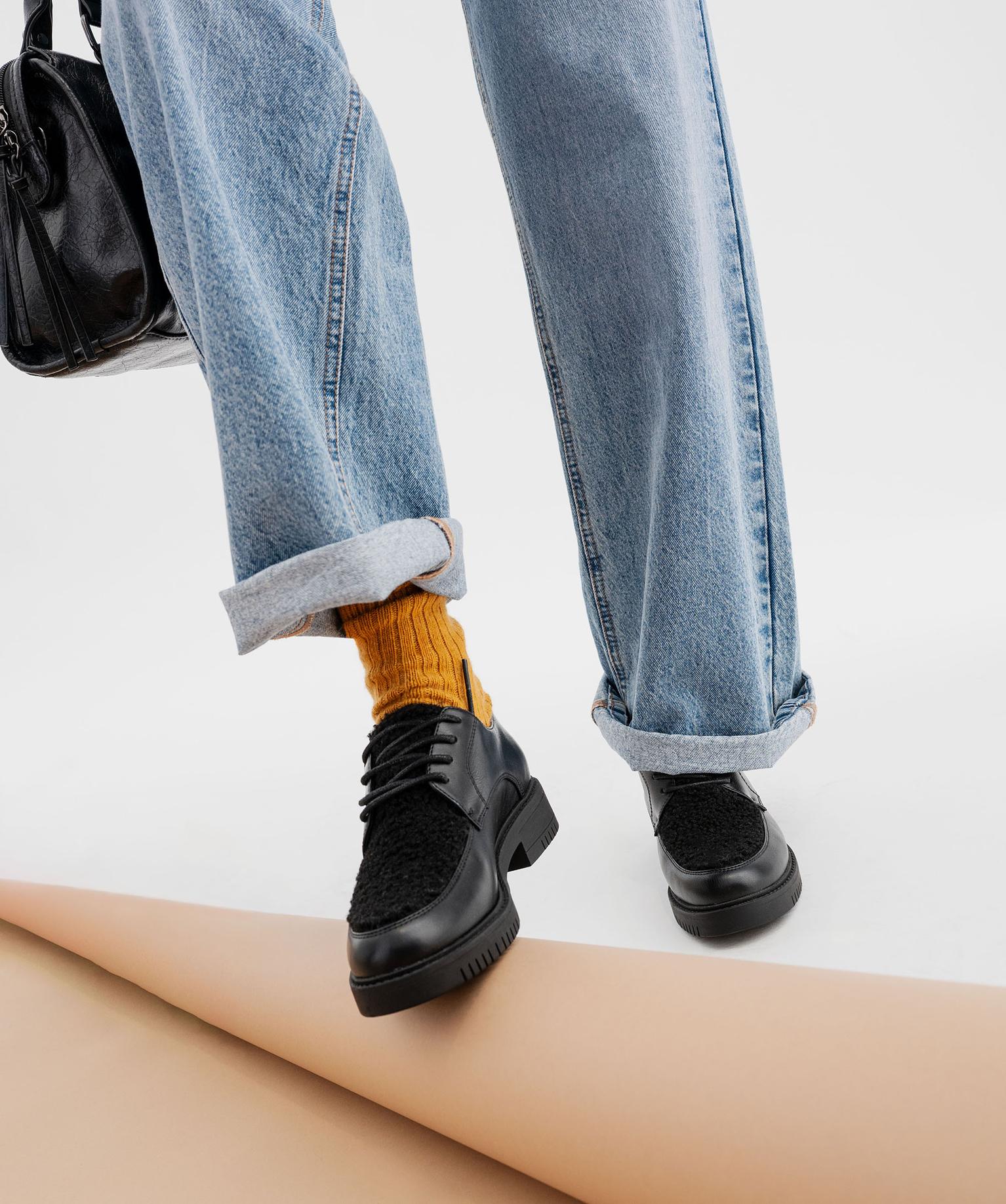 Derbies multimatière à semelle crantée femme noir