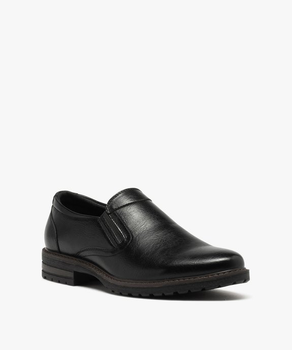 Gémo a créé ces derbies pour ceux qui ne veulent pas choisir entre confort et élégance. Ces derbies homme affichent une silhouette parfaitement enveloppante et assurent un bon maintien du pied. De petits élastiques d’aisance de chaque côté facilitent l’insertion du pied et améliorent le confort pendant la marche. Ces derbies confort, confectionnés dans une matière lisse imitation cuir , accompagneront l’ensemble du vestiaire masculin, depuis les tenues les plus chics jusqu’aux plus décontractées.
