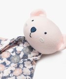 Craquez pour ce parfait compagnon de câlin pour votre enfant : un adorable doudou plat en coton orné d'une tête de souris avec oreilles en relief. Ce doudou LuluCastagnette affiche de jolis motifs fleuris avec broderie en fil scintillant. Il est doté de petits noeud dans les angles ajoutant une touche de style et permettant à bébé de l’attraper facilement. Ce doudou bébé possède la taille idéale pour suivre bébé en toutes circonstance et se glisser facilement dans un sac à langer ou dans un cartable de maternelle. Cette peluche souris est une excellente idée de cadeau de naissance.