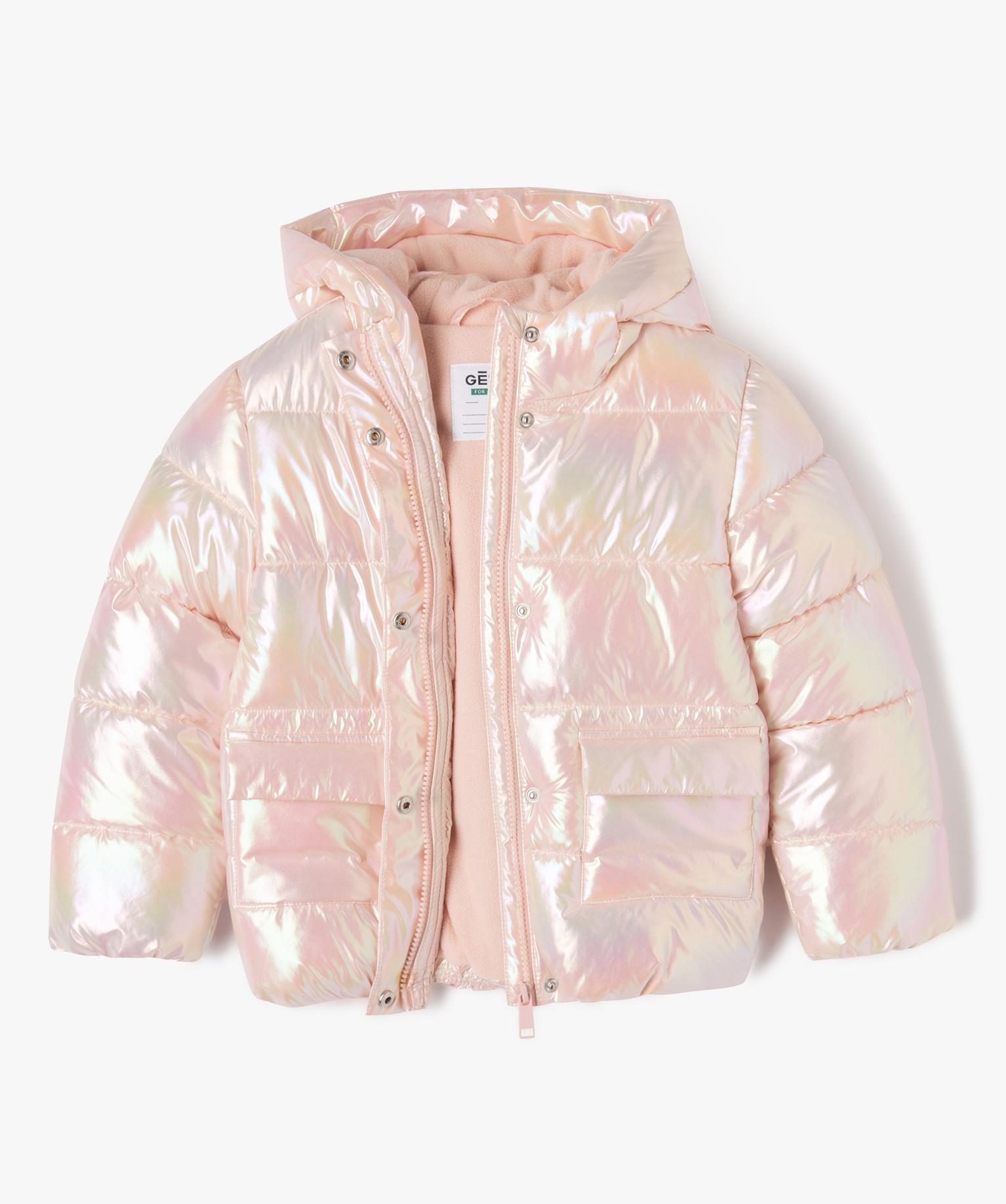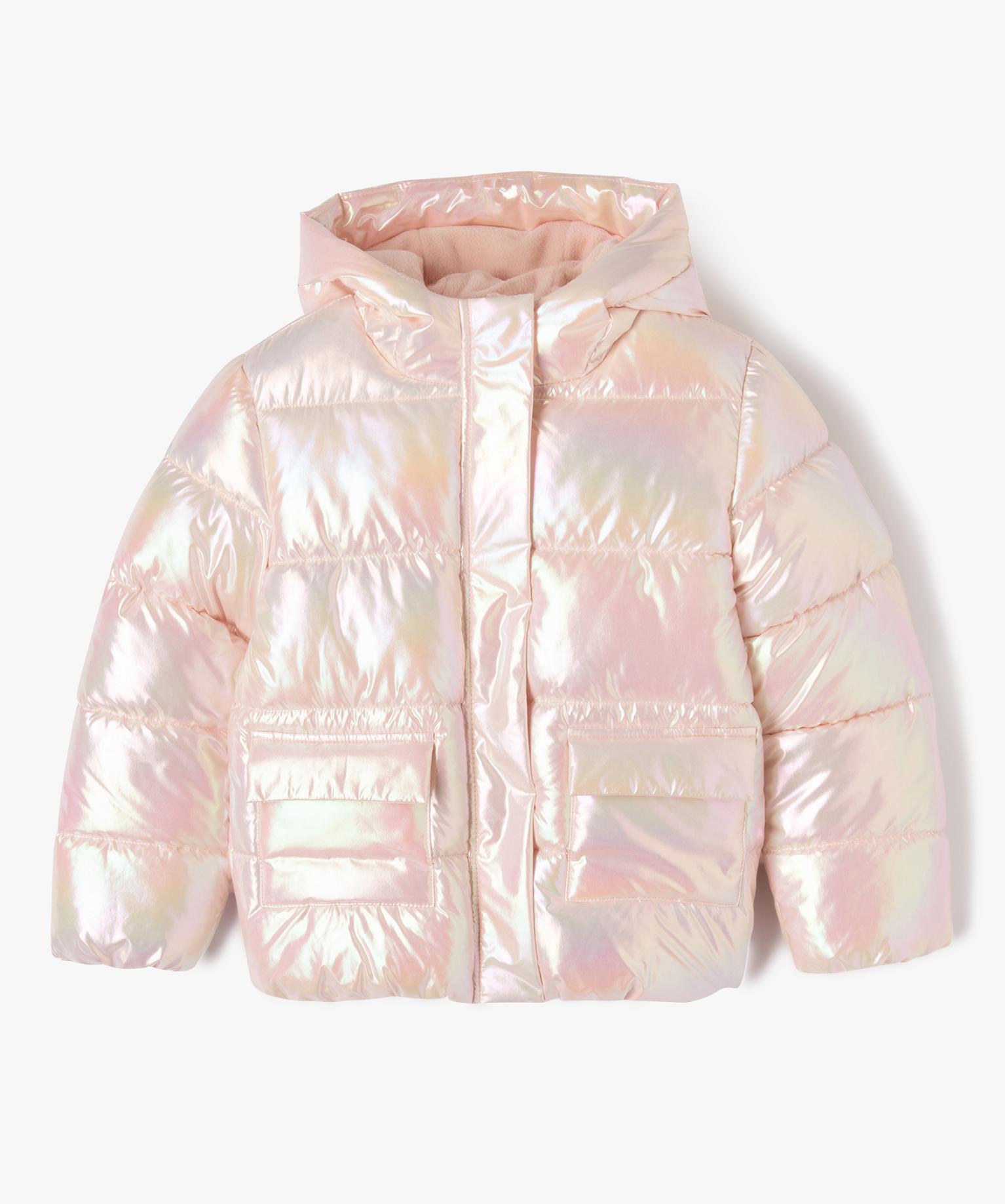 Doudoune à capuche irisée et doublur epolaire fille rose