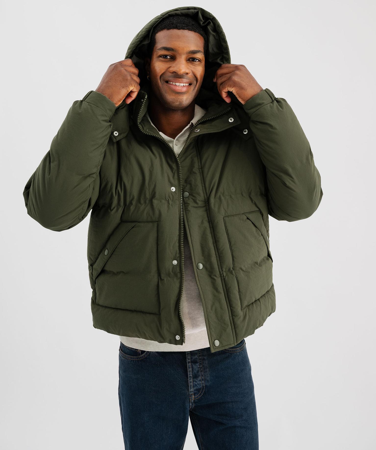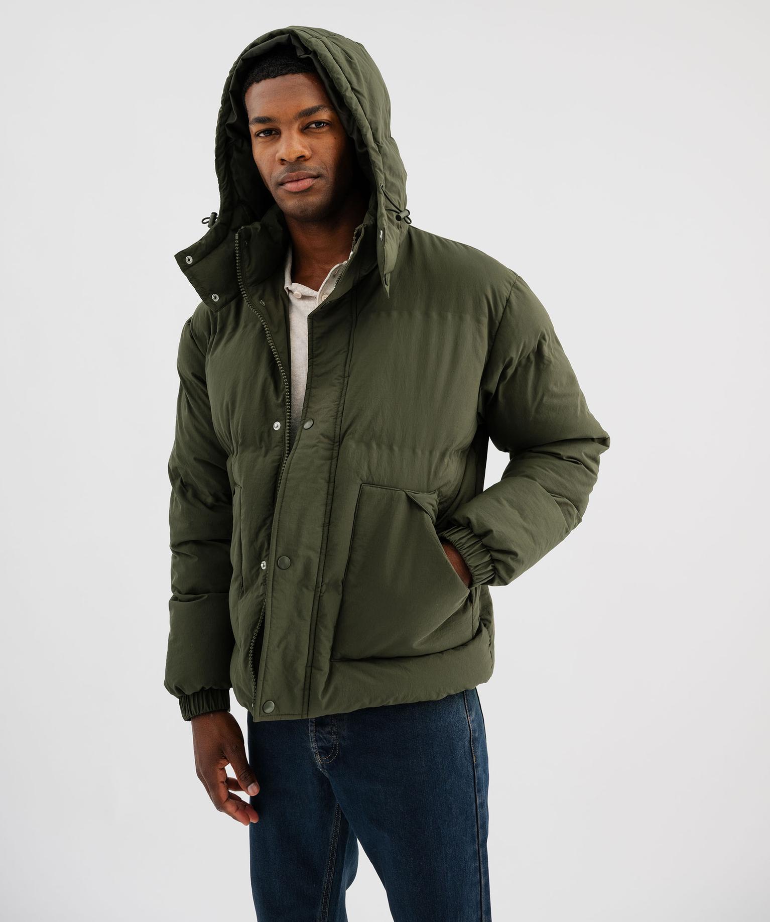 Doudoune à col montant et capuche amovible homme kaki
