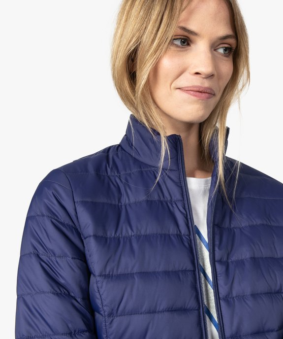 Doudoune femme légère avec col montant et fermeture zippée bleu