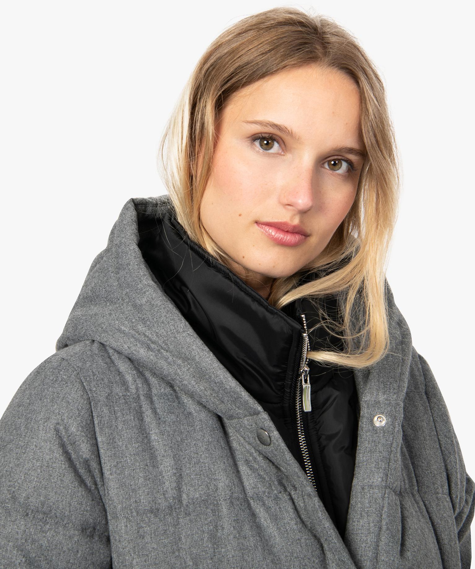 Doudoune femme mi-longue effet 2-en-1 gris chine