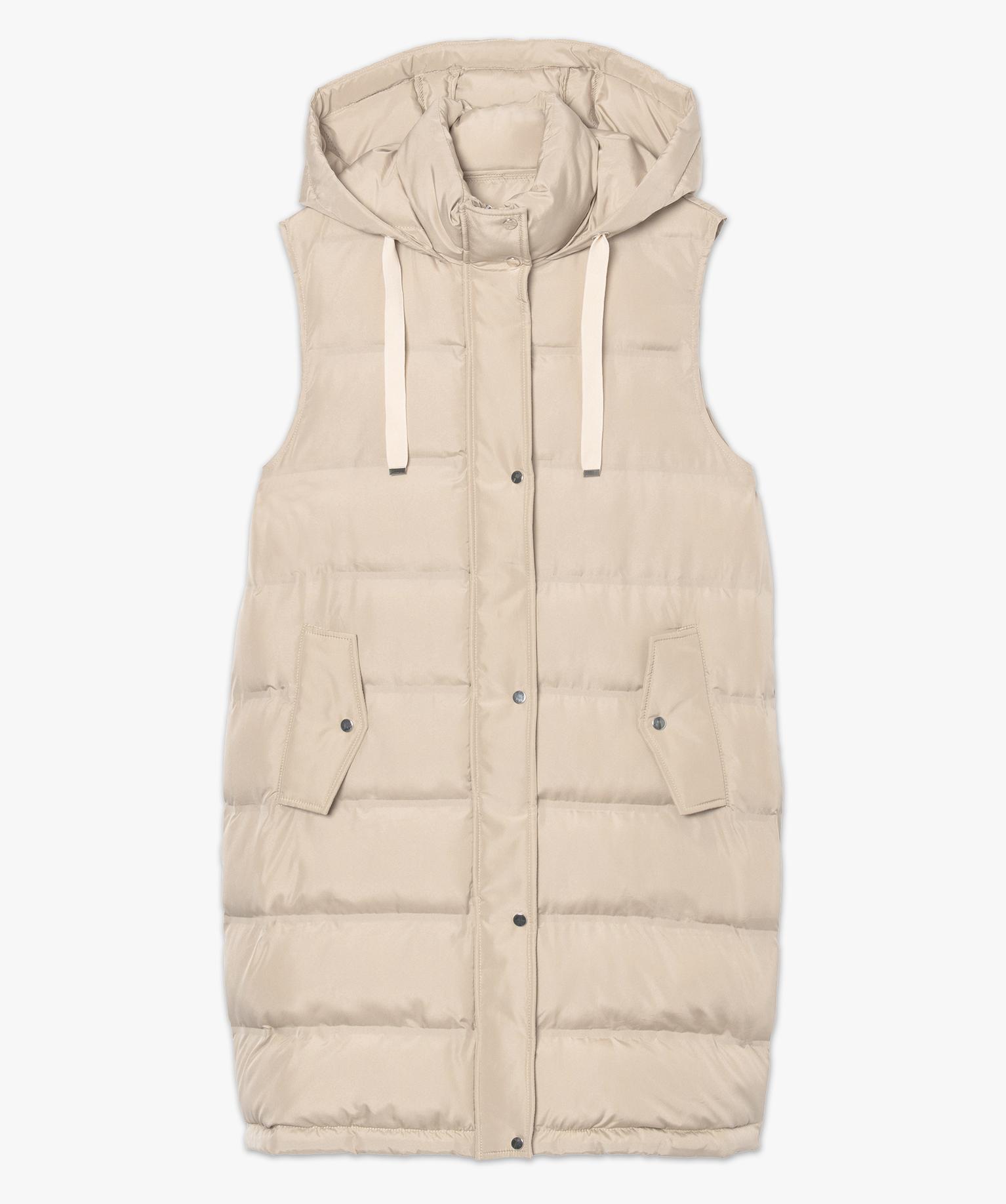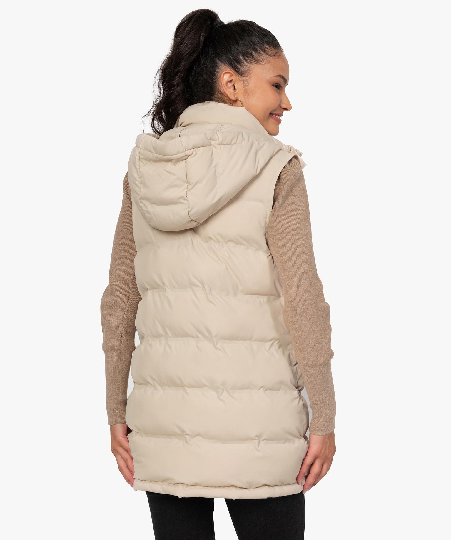 Adoptez un look streetwear tendance avec cette doudoune sans manches ! Une doudoune femme longue, aux finitions travaillées, pour un résultat confortable et très féminin. Le blouson est équipé d'un col montant et d'une capuche pour une double protection. La capuche peut être ajustée par de large lien en sergé avec œillets et embouts en métal argenté. La doudoune se ferme à l'aide d'un zip sous patte pressionnée. Le manteau est équipé de deux poches raglan devant.