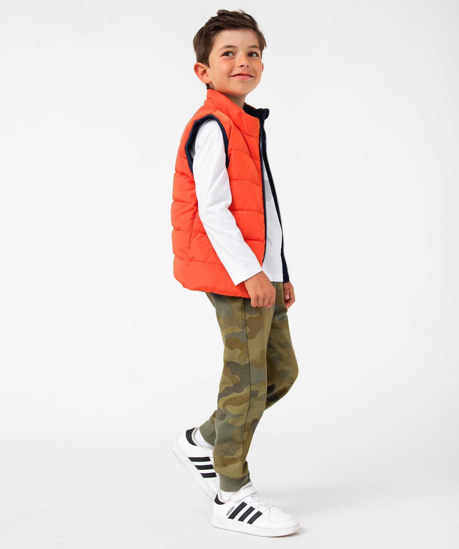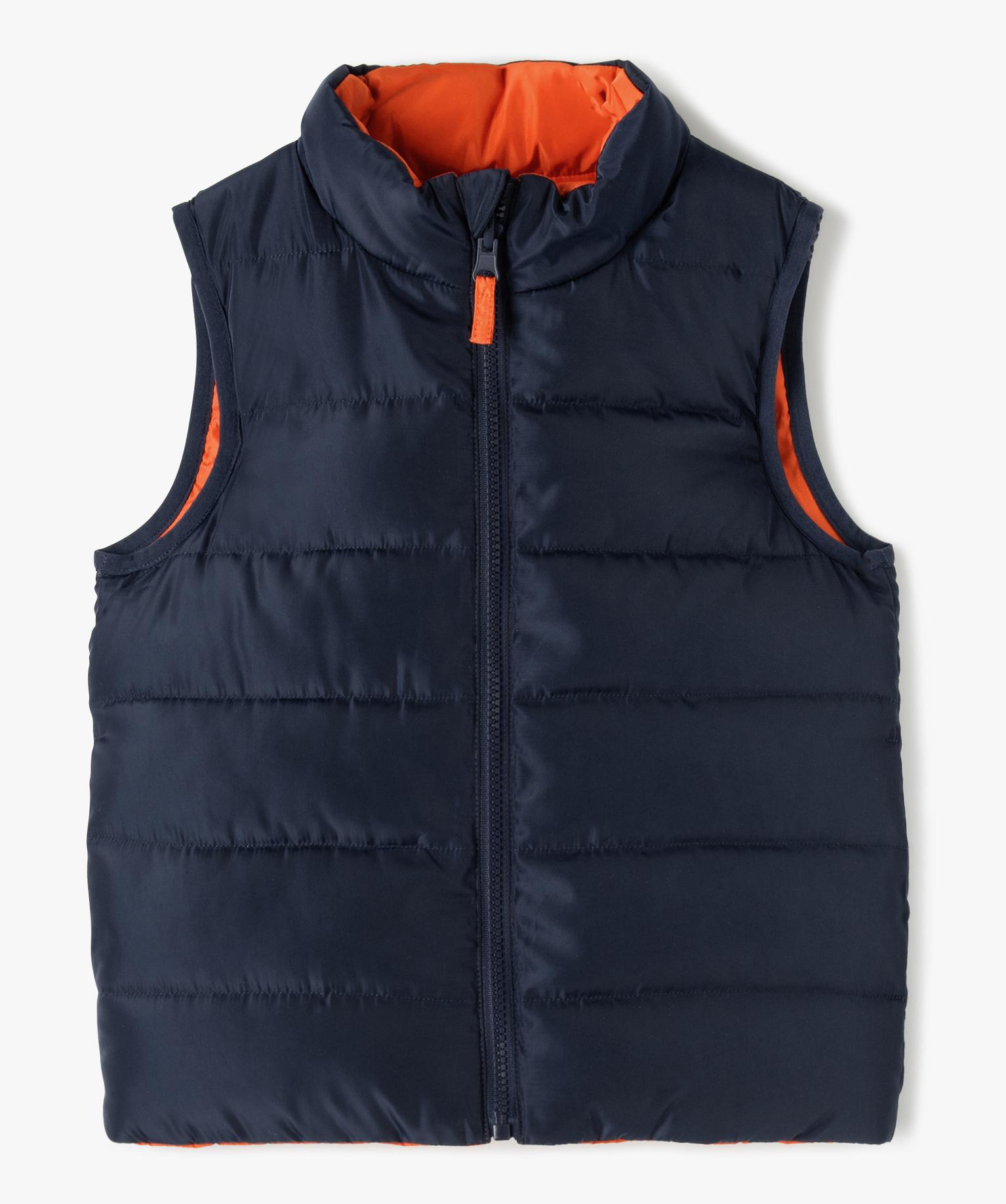 Essentiel au dressing des petits garçons actifs qui aiment les looks sportifs : la doudoune sans manches ! Ce modèle séduira votre bambin par ces nombreux atouts mode et pratiques. En effet, le blouson est réversible avec un côté très coloré et un plus basique. Il est confectionné dans une matière déperlante qui protège contre les petites averses avec un petit col montant idéal contre les courants d'air. Son rembourrage est 100% polyester recyclé. La fermeture zippée est facile à prendre en main et ne vient pas gêner sous le menton grâce à la protection en haut de zip. Enfin, la doudoune sans manches pour garçon possède deux poches dissimulées dans les coutures... sur les deux faces.