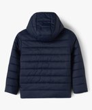 Ligne épurée, col rond avec capuche, fermeture zippée avec patte de protection sous menton, cette doudoune garçon est un indispensable du dressing des enfants ! Légère, elle se porte seule à la mi-saison ou en doublure sous un coupe-vent ou sous un manteau épais au plus froid de l'hiver. Ce blouson matelassé affiche une coupe droite avec deux poches dissimulées dans les coutures latérales. Cette doudoune à capuche se marie avec toutes les tenues des enfants. Biais élastique uni sur le pourtour de la capuche.