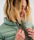 Pratique en toutes circonstances, la doudoune légère réchauffe immédiatement toutes les tenues ! Avec sa coupe droite et son col montant, cette doudoune pour femme convient à toutes les silhouettes. Elle possède un rembourrage fin en polyester recyclé, qui lui permet d’être portée seule à l’intersaison et sous un manteau en plein hiver. Elle se ferme facilement par zip et possède deux poches latérales dissimulées dans les coutures.