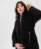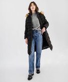 Doudoune longue avec capuche en fourrure imitation femme noir