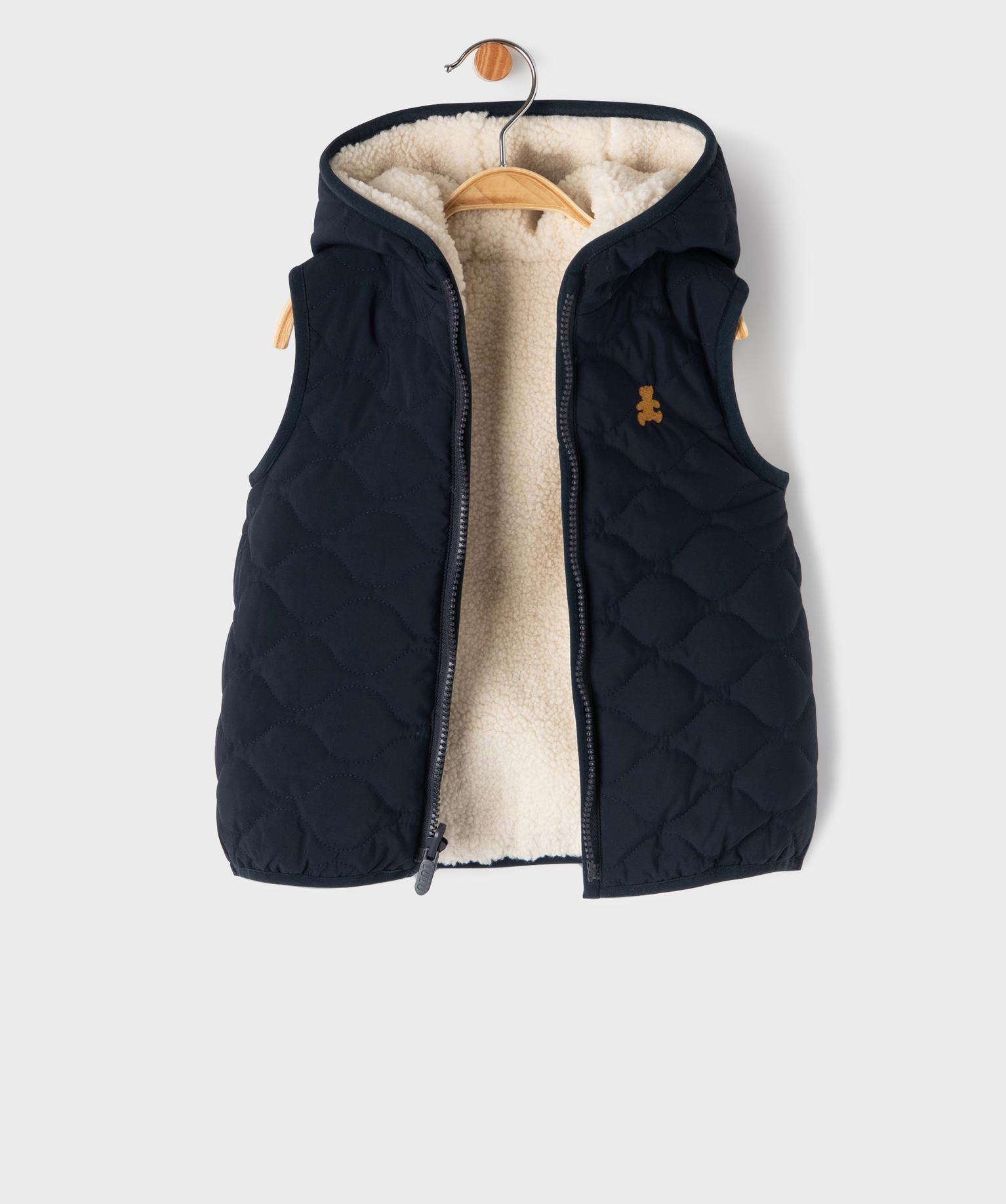 Doudoune sans manches à capuche réversible bébé garçon - LuluCastagnette ecru
