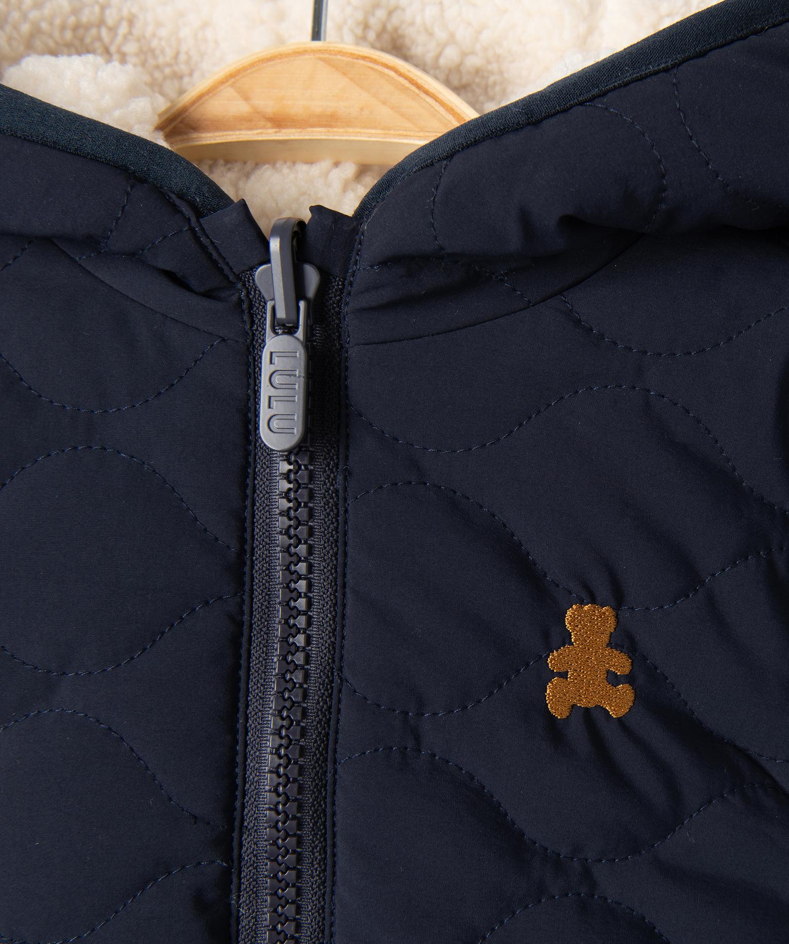 - une face version doudoune au matelassage fantaisie avec petite broderie Lulu sur la poitrine