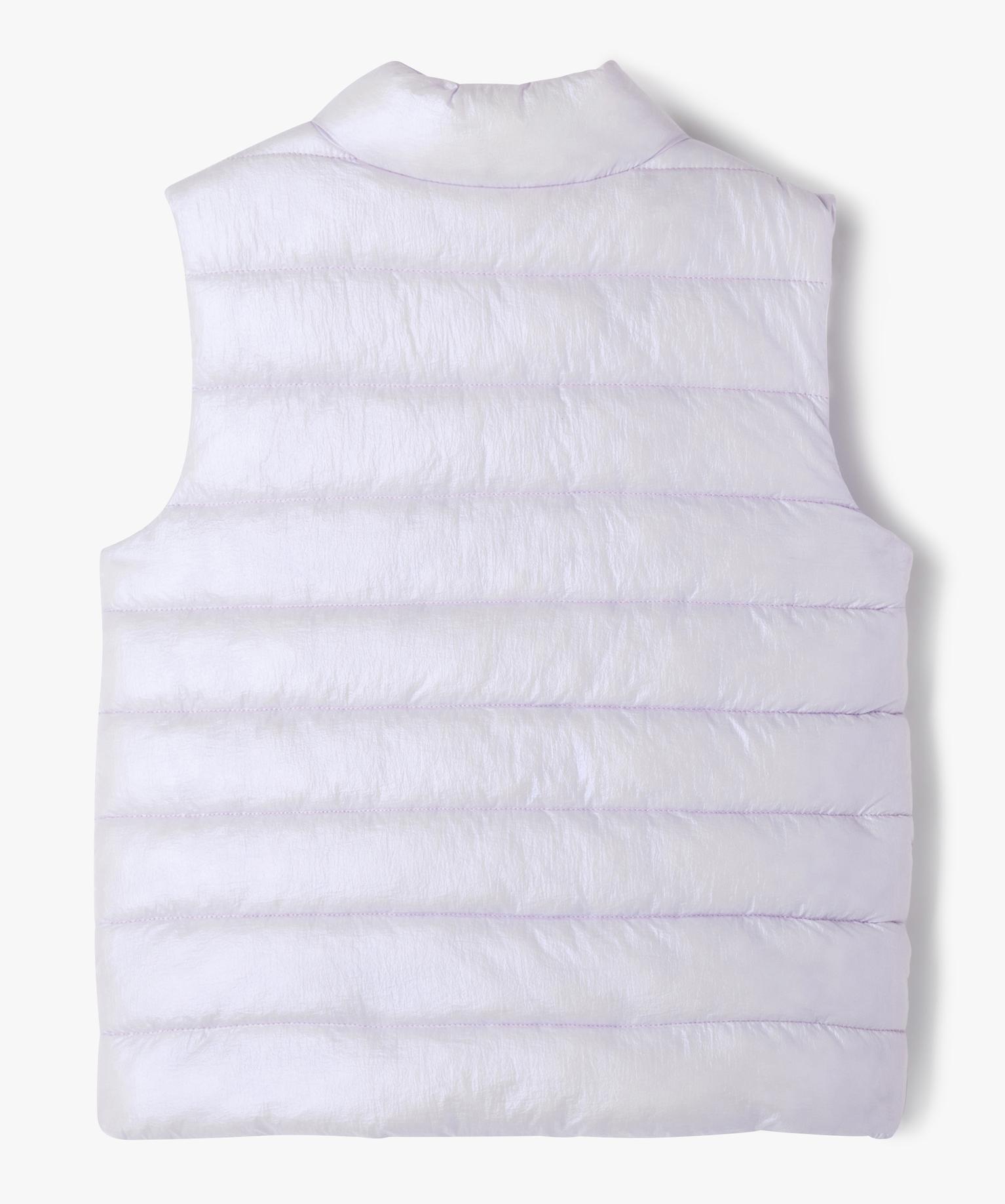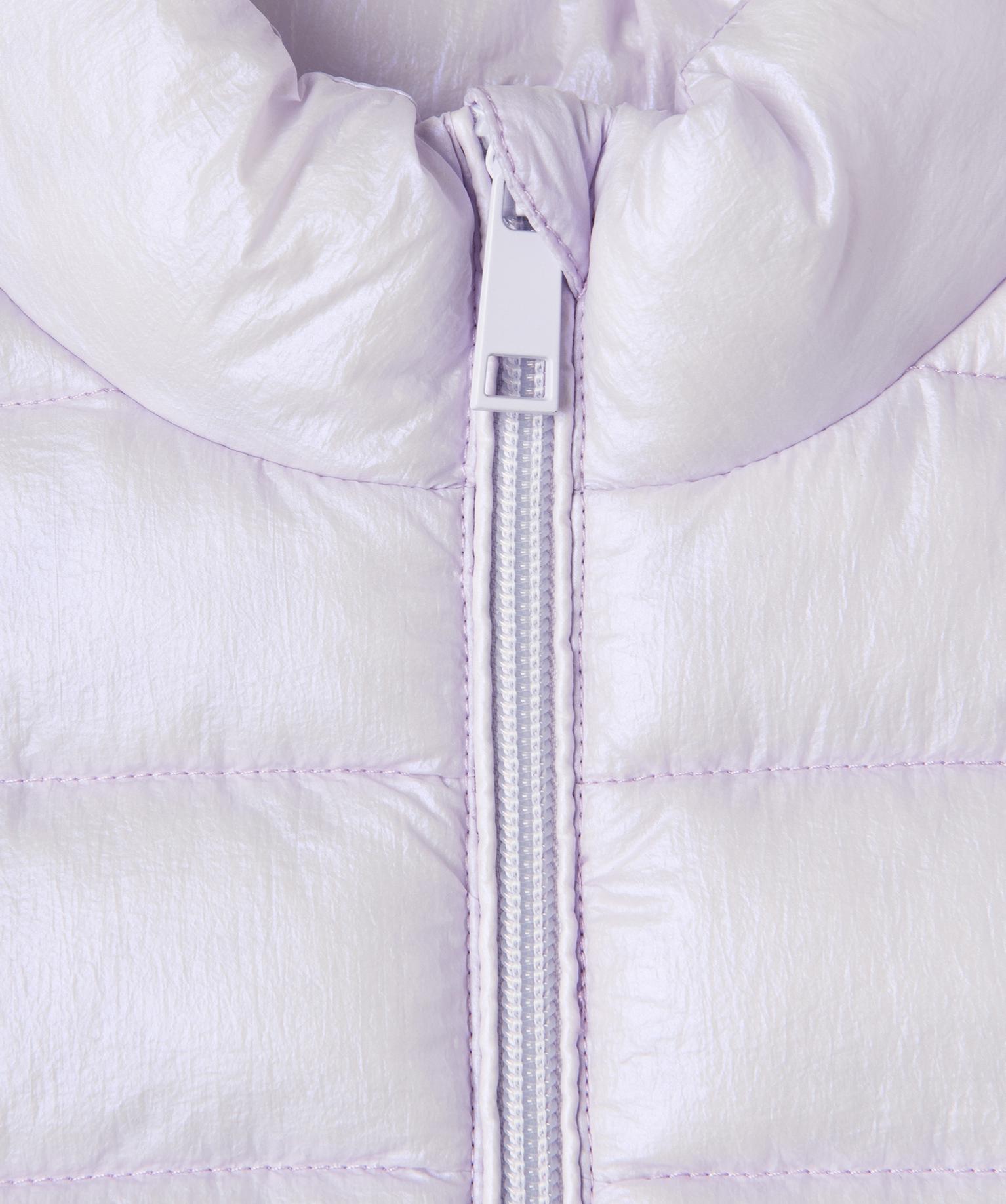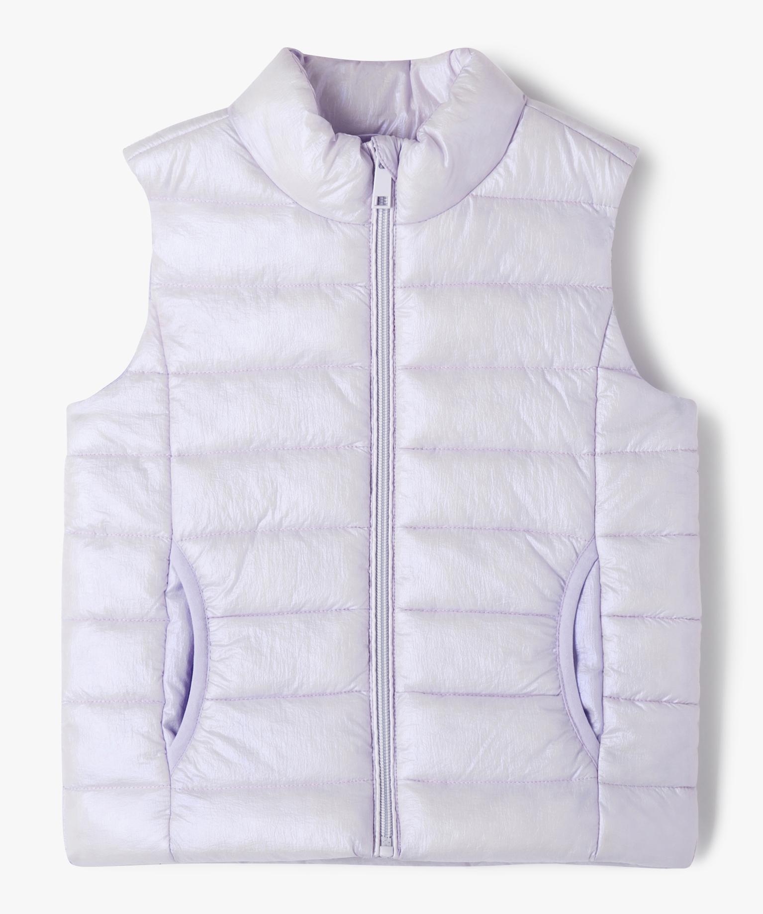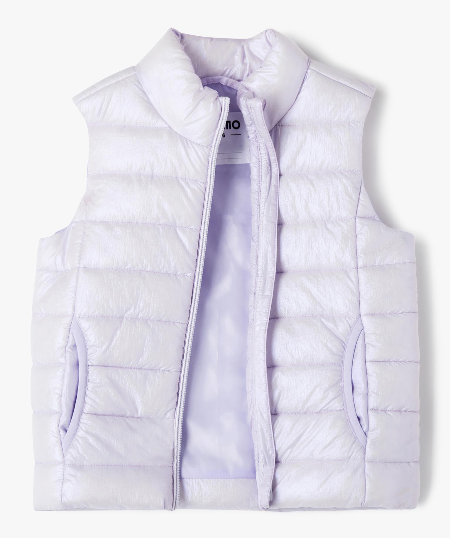 La doudoune sans manches fait désormais partie des pièces indispensables du vestiaire des enfants. Celle-ci a été spécialement créée pour ajouter une touche de lumière aux tenues des filles grâce à sa matière affichant des reflets métallisés. Elle possède un col montant et deux poches latérales bordées par un biais élastique. Ce blouson fille est confectionné dans une matière matelassée dont le rembourrage est en polyester recyclé. Il s’enfile facilement grâce à un zip et se porte sur un tee-shirt, une chemise ou un pull, une pièce idéale pour réchauffer les looks des filles.
