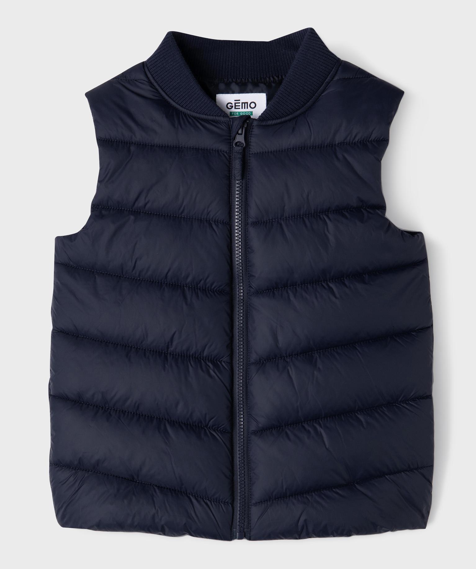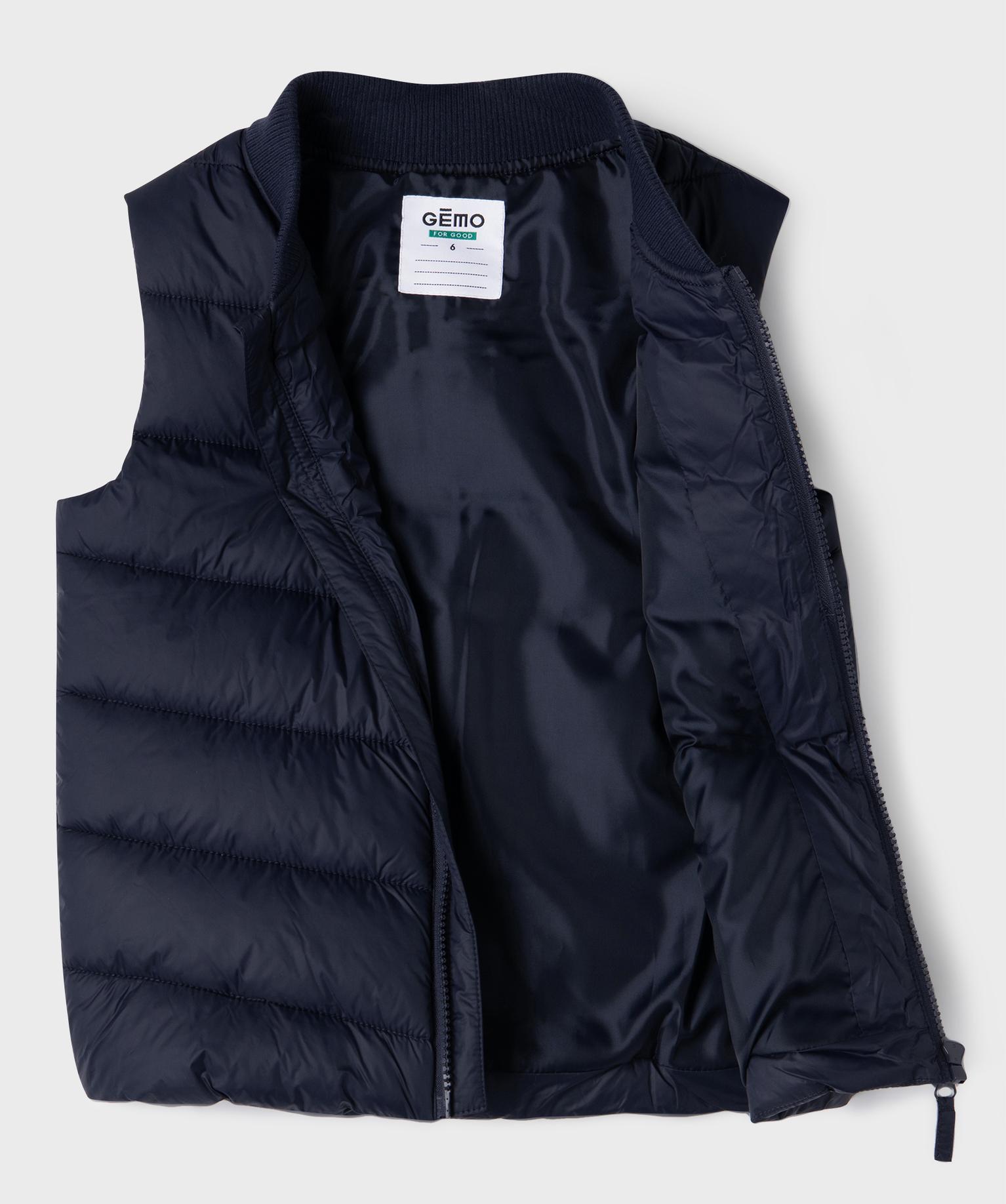 Idéale pour les journées fraîches, cette doudoune sans manches offre confort et liberté de mouvement. Sa coupe pratique et légère permet de la superposer facilement sur un sweat ou un pull, tandis que sa finition douillette protège efficacement du froid. Cette doudoune garçon se distingue par son col en bord-côte ajoutant une touche d’élégance. Parfaite pour un look urbain et casual, elle accompagne les enfants dans toutes leurs aventures quotidiennes avec un maximum de style. Fermeture zippée.
