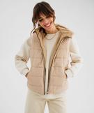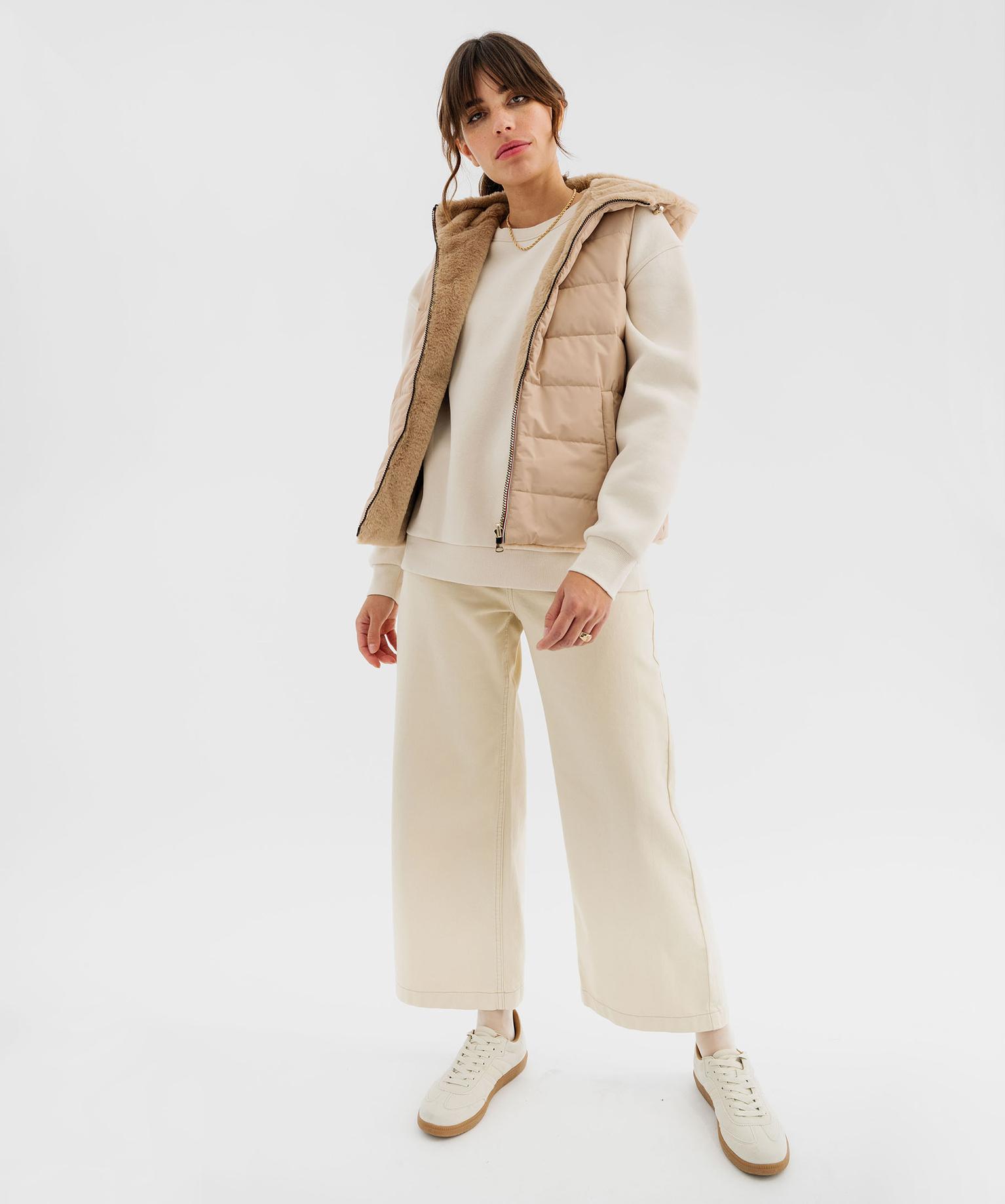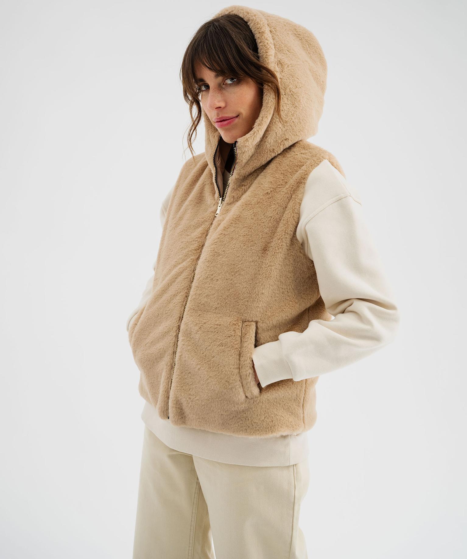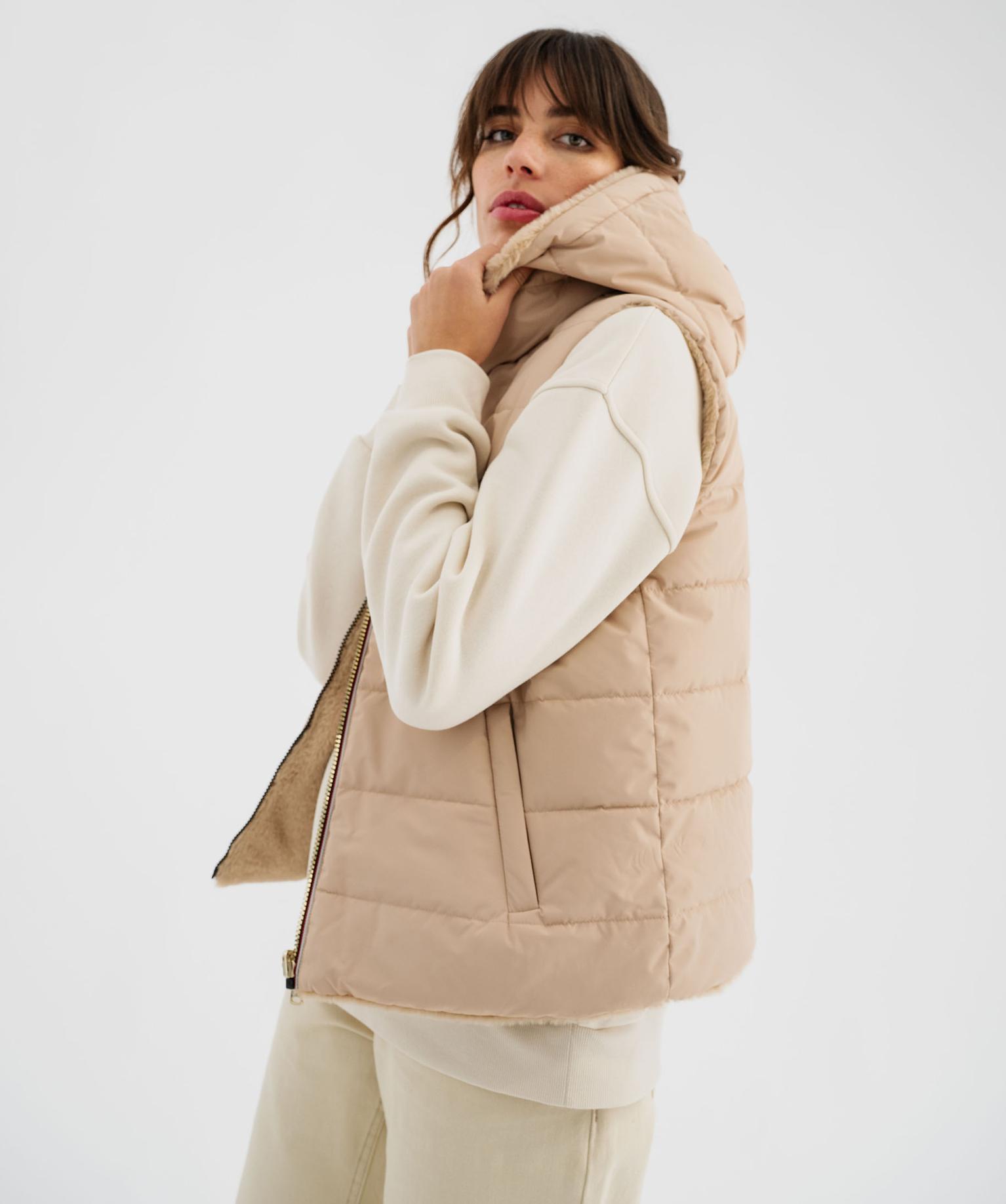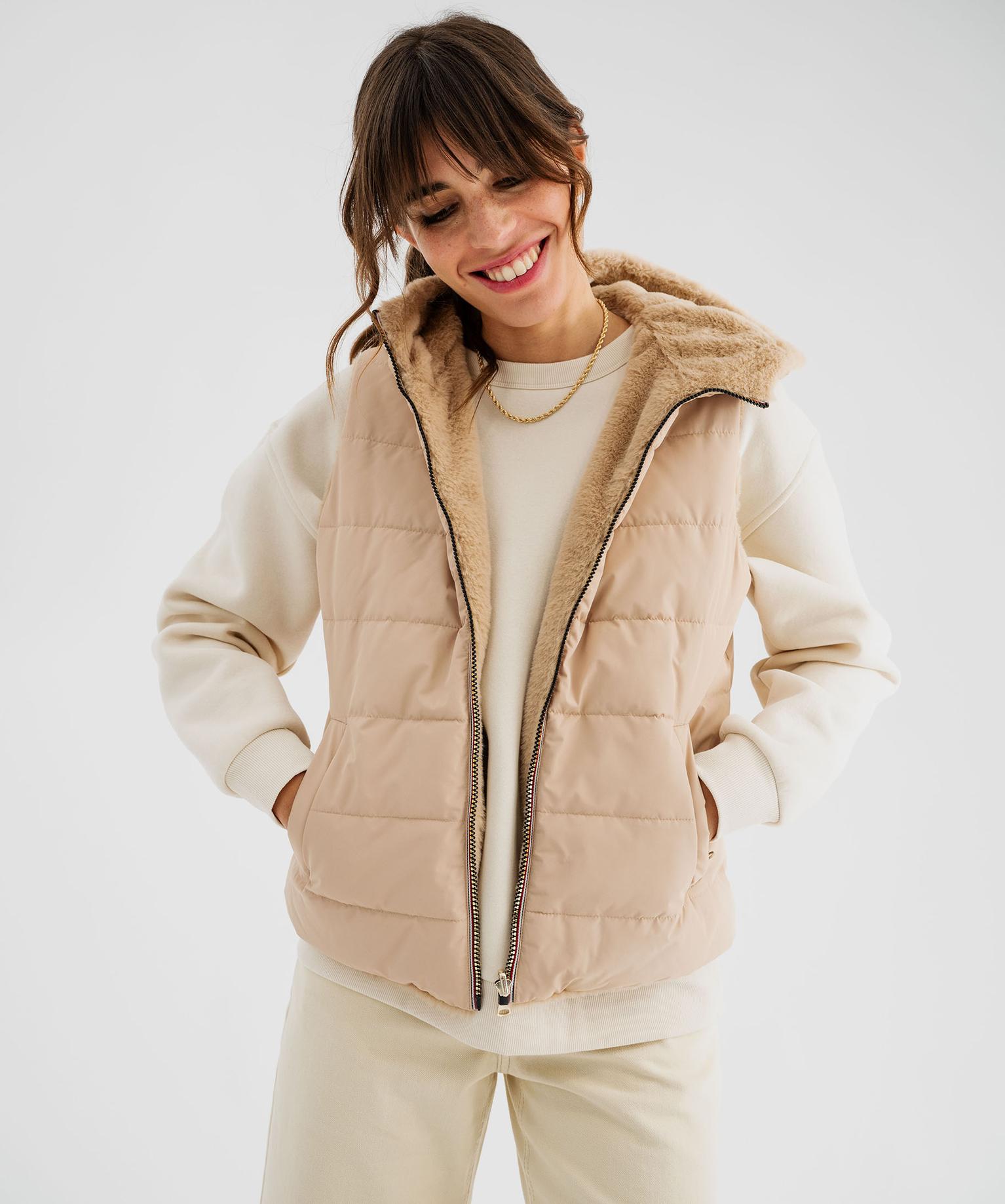 Doudoune sans manches réversible à capuche femme beige fonce