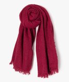 Faites scintiller les looks de l’hiver grâce à cette jolie écharpe en maille. Une écharpe femme tricotée dans une maille originale formant des motifs losanges. Cette écharpe pailletée est bordée de petites franges sur les côtés et de longues franges aux extrémités. Elle accompagnera tous les manteaux de l’hiver.