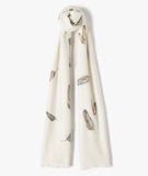 Écharpe femme longue et douce imprimée plumes brillantes blanc chine