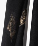 Écharpe femme longue et douce imprimée plumes brillantes noir