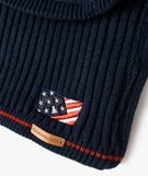 Cet hiver accessoirisez les looks des enfants avec cette jolie écharpe en maille côtelée signée LuluCastagnette. Une écharpe forme snood facile à enfiler, qui reste toujours bien positionnée. Doublée polaire, cette écharpe garçon offre douceur et chaleur tout au long de la saison. Elle est agrémentée d’un liseré contrastant de chaque côté, d’un drapeau américain brodé et d’une étiquette logo imitation cuir. Déclinée dans un coloris intemporel, cette écharpe LuluCastagnette s’accorde facilement avec tous les blousons et manteaux des enfants.